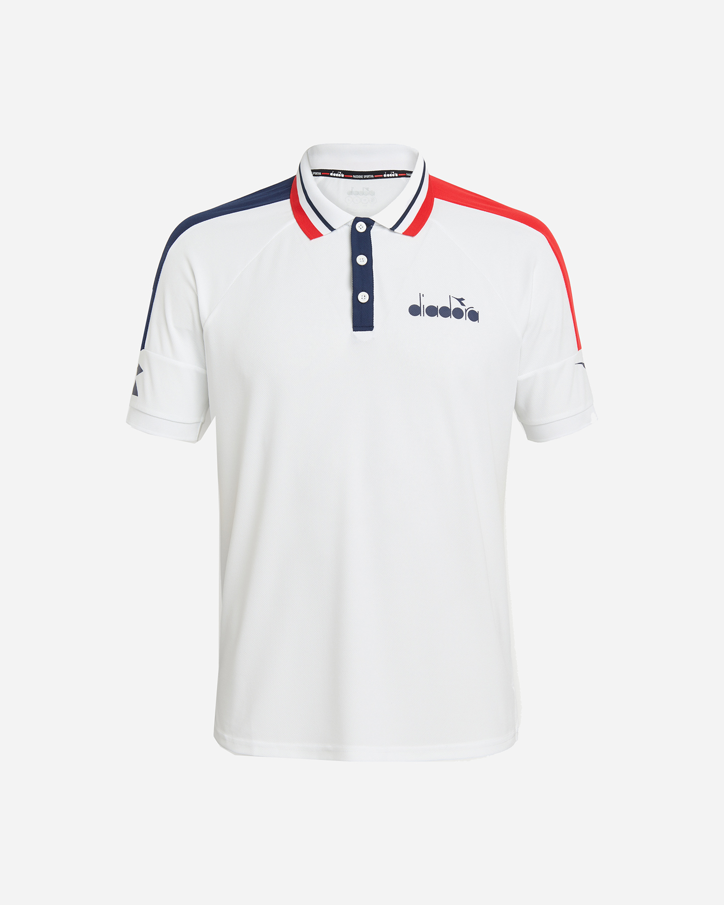 Polo Diadora Icon M for man, ideal for spring. Made of sports and casual fabric with multi-coloured colors. Suitable for tennis practice and for a fashionable casual look. A versatile and high-quality garment for every occasion.
