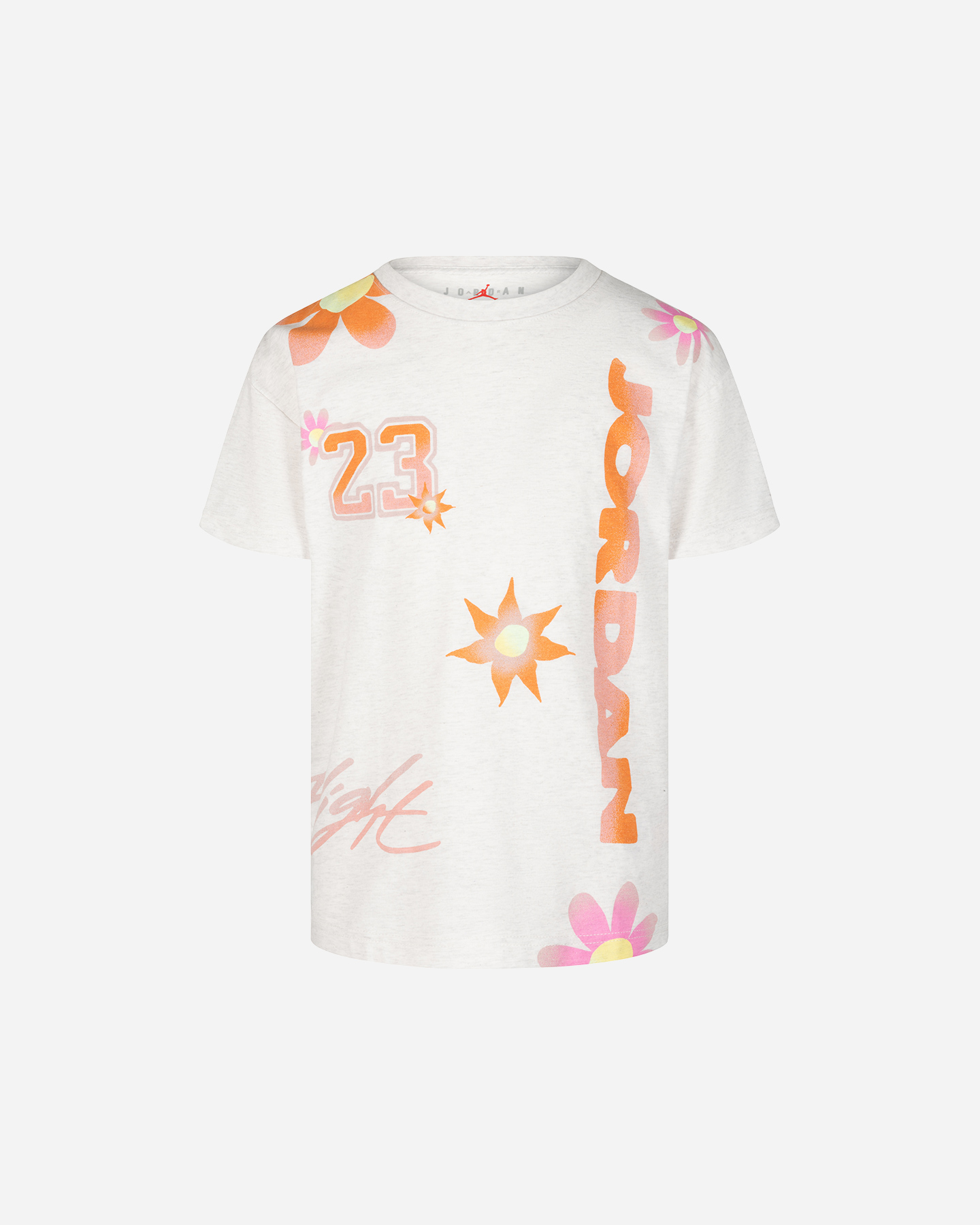 Short sleeve casual t-shirt with multicolor floral print, ideal for all seasons. Made of lightweight and comfortable fabric, perfect for a casual and fashionable look. Available in different sizes to fit every body. Add a touch of color to your wardrobe with the Nike Jordan Flower Jr T-shirt.