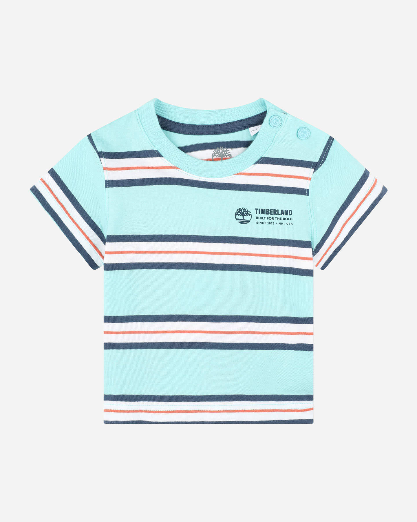 Multicolor striped t-shirt for man, suitable for all seasons. Made of lightweight and comfortable fabric, ideal for a casual and fashionable look. The striped design makes it easy to match this garment to different outfits. A must-have in every man's wardrobe looking for style and comfort.