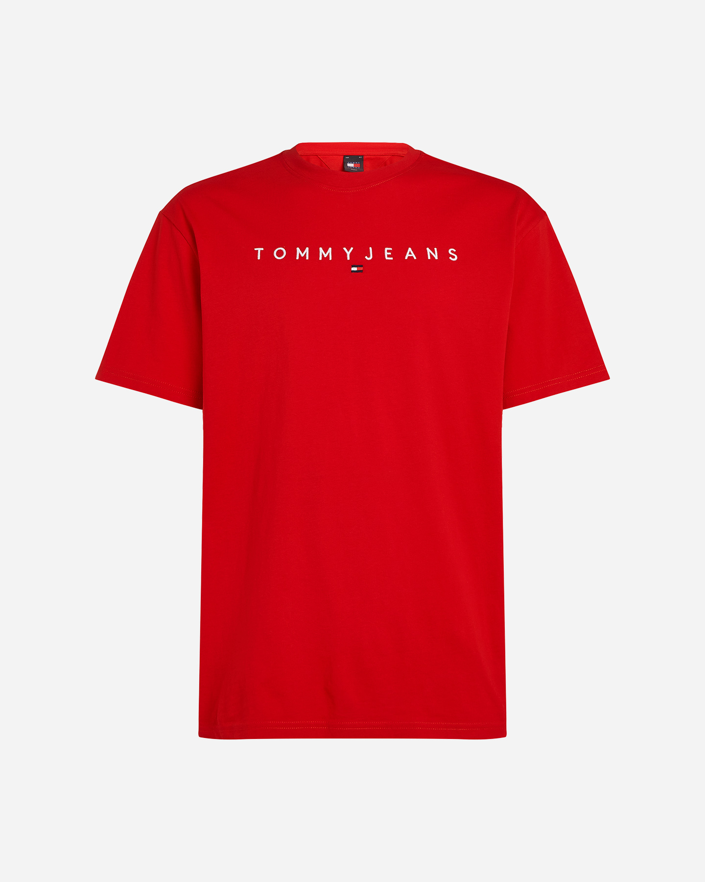 T-shirt for men of multi color, suitable for all seasons. Decorated with Tommy Hilfiger's linear logo on the chest. Made with high quality materials to ensure comfort and style, perfect for a casual and fashionable look. An essential garment for the wardrobe of every modern man.