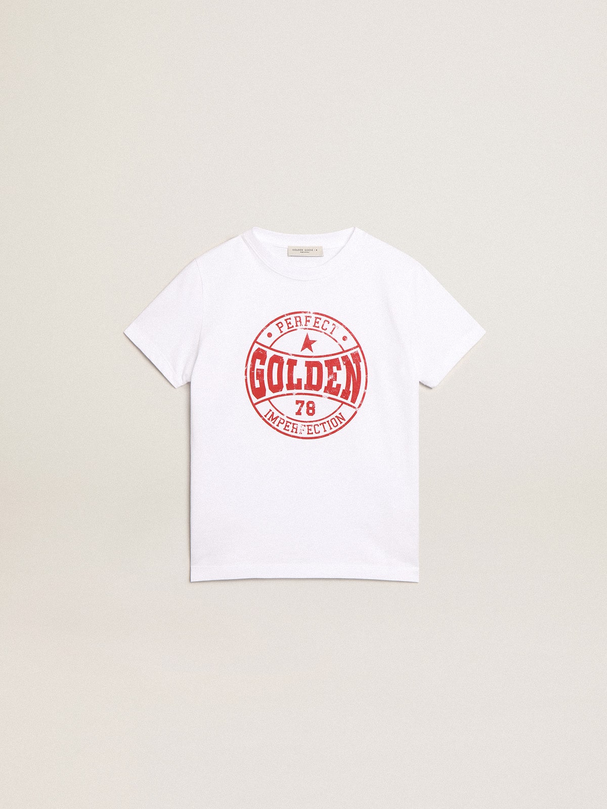Golden Goose Baby White T-shirt With Red Logo Printed At Center, Size: 10
