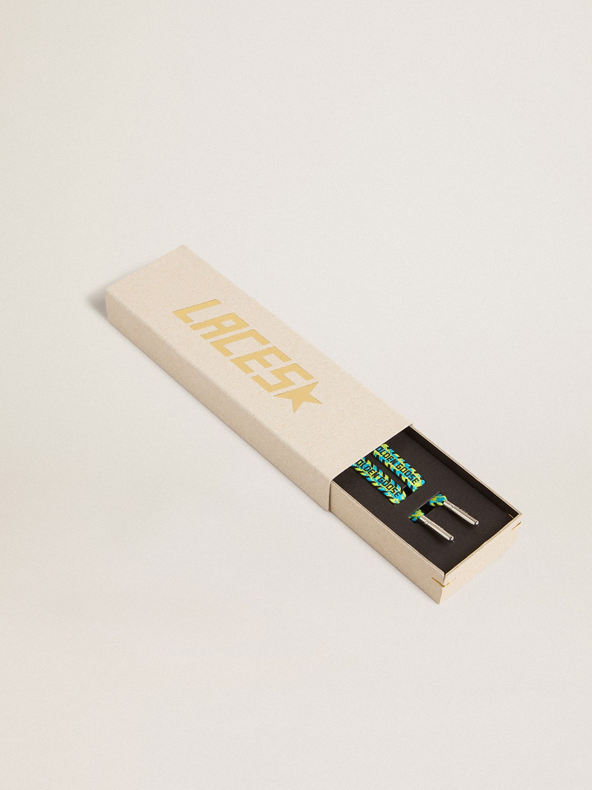The blue cotton laces for men's shoes Golden Goose are perfect for a casual and elegant look in autumn/winter. The blue tone is easily combined with different types of footwear, while contrasting black writing adds a touch of originality. Available in size 110, will be the detail that will make the difference in your outfit.