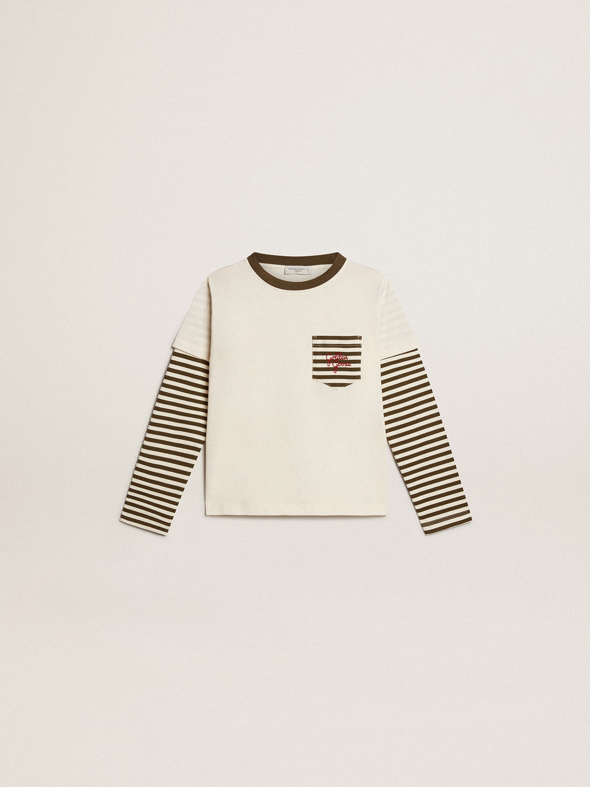 Elevate your casual style with the Golden Goose Doppia Manica T-shirt for men. Perfect for the Spring/Summer season, this vibrant Multi-colored tee is a must-have for any fashion-forward wardrobe. Made with quality materials, this versatile shirt is ideal for everyday wear or dressing up for a night out. Upgrade your look with this effortlessly cool and stylish T-shirt from Golden Goose.