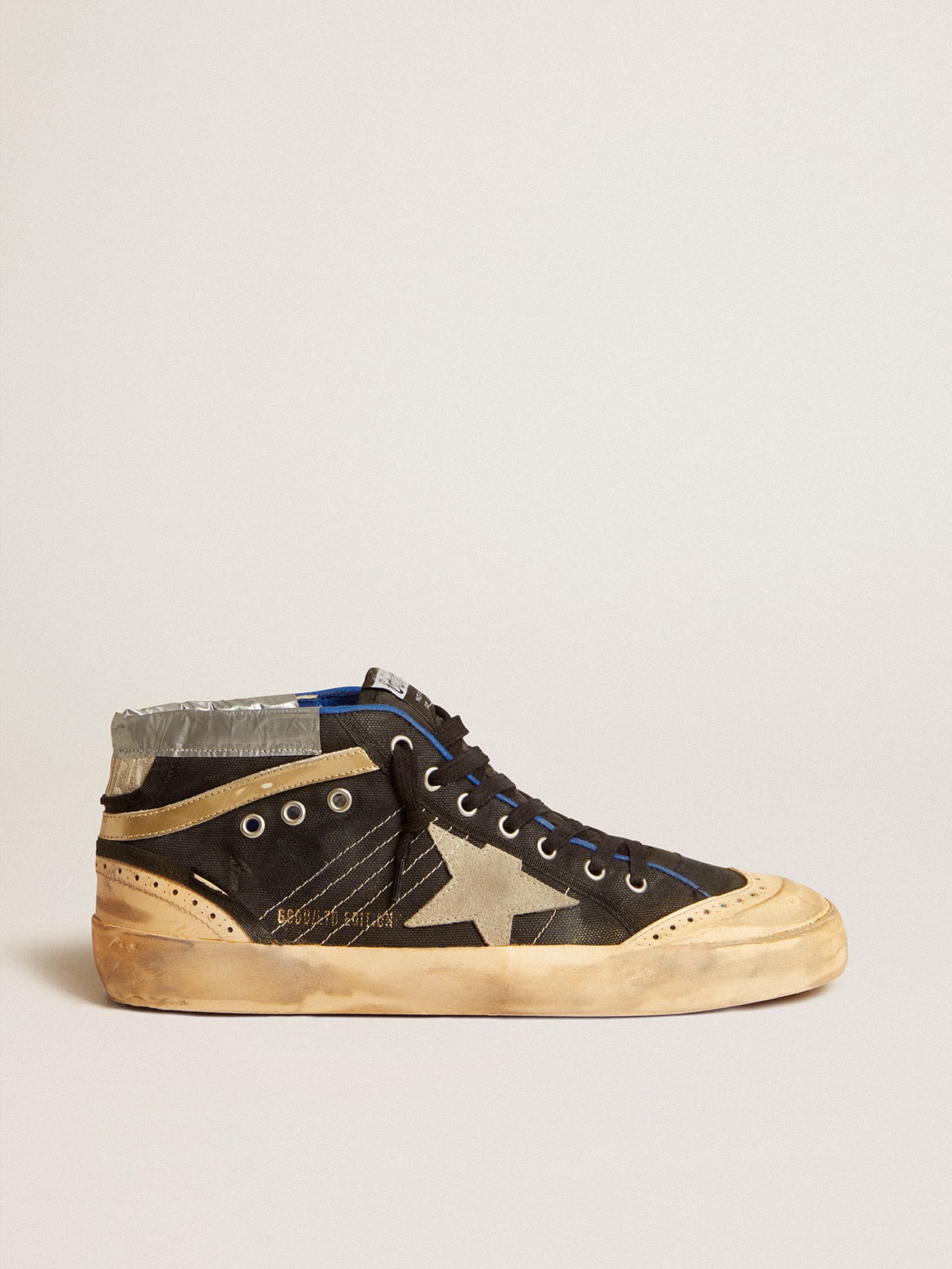 Golden Goose Mid Star Man Lab In Canvas Black With Suede Star Ice, Man, Size: 40