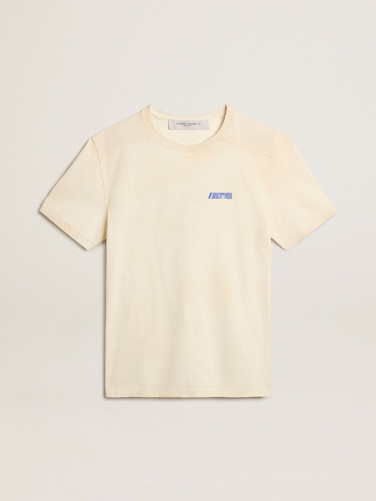 Golden Goose T shirt in Cotton Color White Viscount With Marathon Logo Blue, Man, Size: XL
