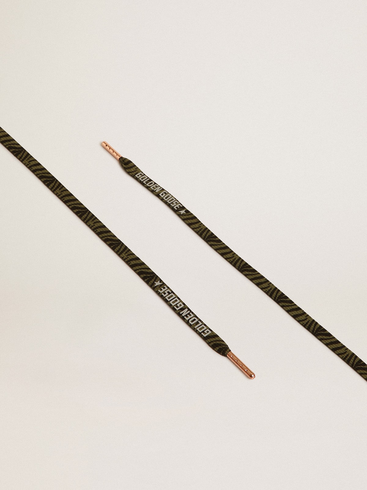 Stay cozy and stylish this Autumn/Winter with these Grey Golden Goose sneakers. The perfect blend of casual and elegant, these shoes feature green zebra-print laces for a unique touch. Ideal for completing any outfit with a touch of luxury, these sneakers are a must-have for the fashion-forward man. Step out in style with Golden Goose Lacci Zebrati sneakers.