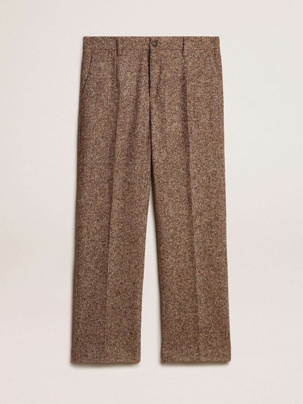 Golden Goose Men's Trousers In Mixed Wool And Silk Color Beige And Brown, Man, Size: 50
