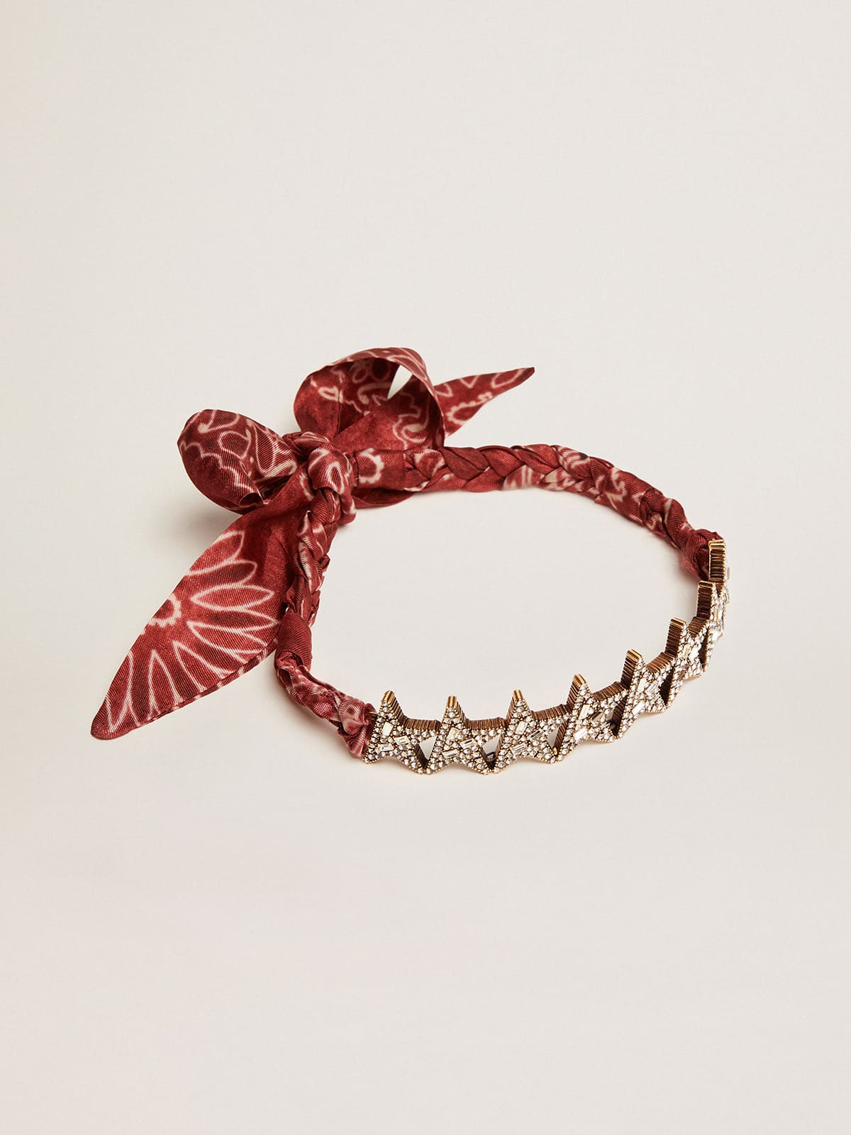 Golden Goose antique gold necklace with stars and crystals applied, ideal for a casual/ stylish look. Perfect for the autumn/winter season, it will add a touch of light to your outfit. Available in size U, fits any occasion and will be a must-have in your wardrobe. Let yourself be conquered by the beauty and elegance of this unique necklace.
