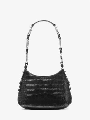 MK Hobo Bardot Mini Leather Print Crocodile Black Michael Kors