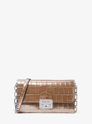 MK Large convertible Tribeca shoulder bag in crocodile print Brown Michael Kors