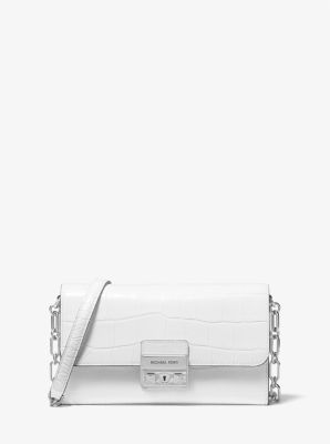 MK Large convertible Tribeca shoulder bag in crocodile print leather White Michael Kors