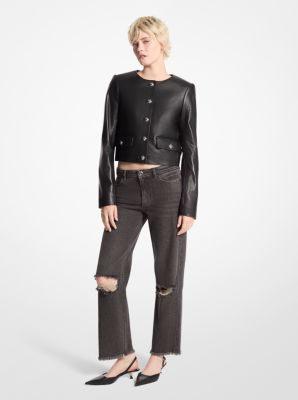 Short black leather jacket perfect for a casual and fashionable look in autumn/winter. Made of high quality materials and elegant details, this Michael Kors IT jacket will add a touch of style to your wardrobe. Comfortable to wear and easy to match with various outfits, it will be an indispensable garment to face colder days with style and comfort.