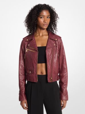 The short motorcycle jacket in MK ripple leather is perfect for autumn and winter. The red color adds a touch of vivacity to your casual look. Made of high quality materials, this jacket will keep you warm during cold days. A versatile and fashionable garment to complete your outfit.