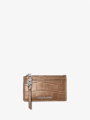 MK Small credit card holder in leather crocodile print with Empire logo Brown Michael Kors