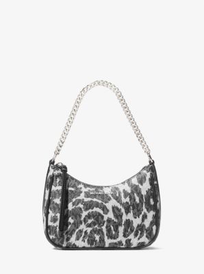 MK Small Jet Set Charm with logo and leopard print Black Michael Kors