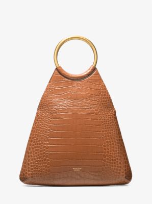 MK Tote bag Ursula large leather crocodile print Brown Michael Kors