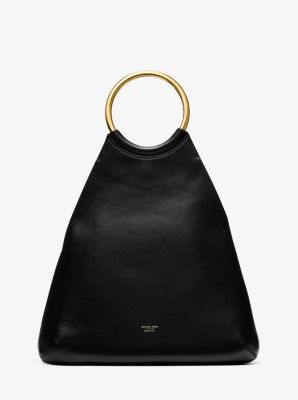MK Tote Ursula large leather bag with ring handle Black Michael Kors