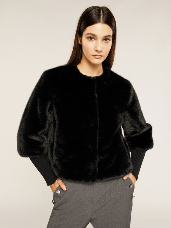 Short hood with knitted wrists is perfect for autumn and winter. Its black color makes it suitable for any occasion, while its casual style makes it comfortable to wear everyday. Made with high quality materials, this hood is a must-have for the wardrobe of every woman who loves style without sacrificing comfort.