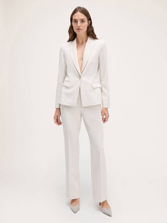Single-breasted blazer in fabric cracks for women is ideal for spring and autumn. The white color makes this garment versatile to match different outfits. Thanks to its casual cut, it is perfect for an elegant but informal look. Choose this blazer for an extra touch of style to your wardrobe.