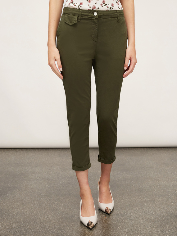 Chinos trousers with casual cut and green color, suitable for Autumn/Winter season. Made of lightweight and comfortable fabric, ideal for a casual and fashionable look. Size 36 cut for a perfect fit. Comfortable to wear for every occasion, from work to leisure.