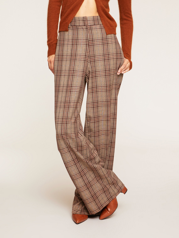 Wide trousers with diamond pattern, perfect for a casual and comfortable look. Made of warm brown fabric, ideal for the Autumn/Winter season. Size XS, suitable for women who love a relaxed and fashionable style. Complete your wardrobe with these versatile design pants.