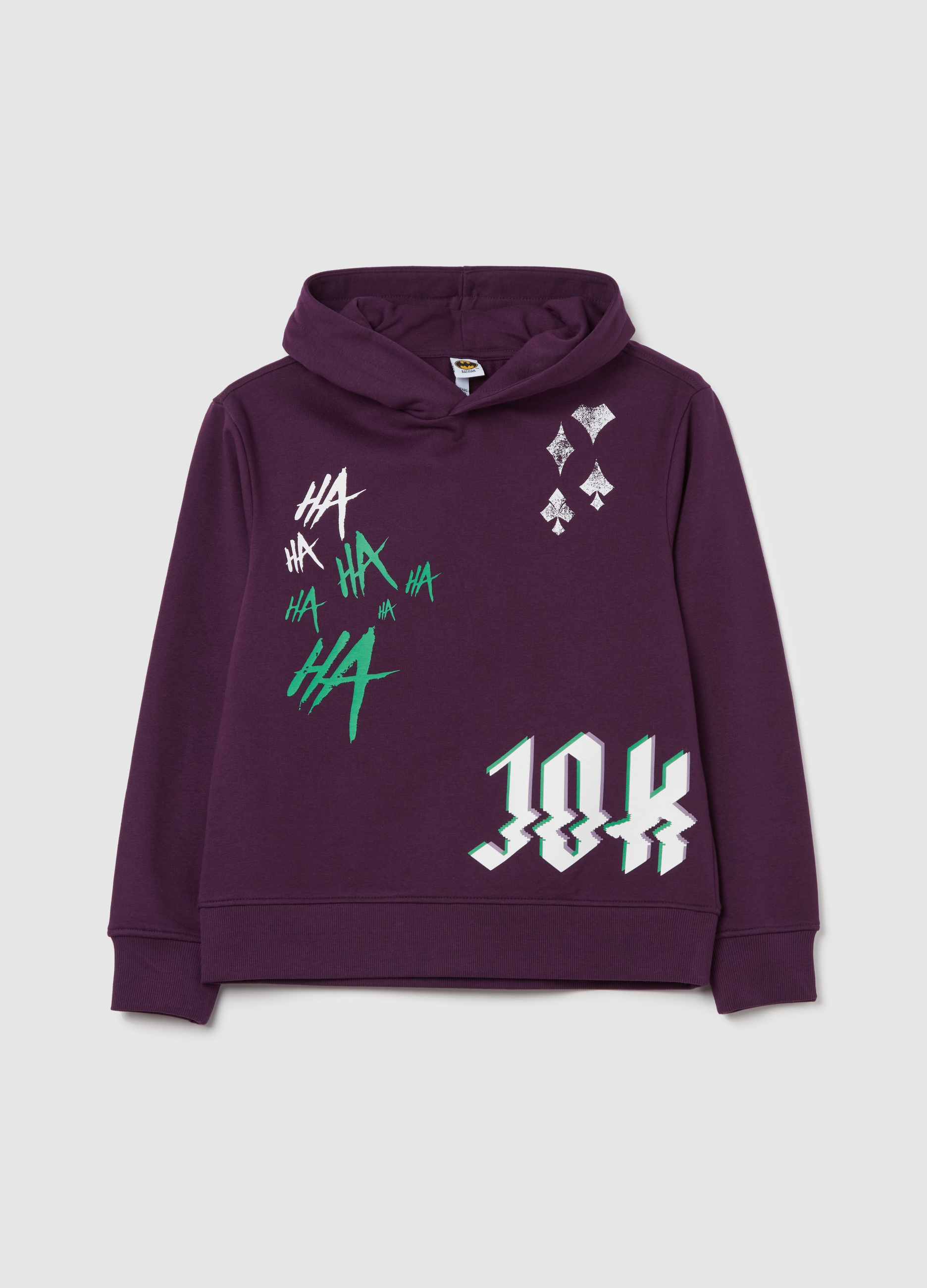 Men's hooded sweatshirt, purple color, perfect for autumn and winter. The "joker" print adds a touch of originality and style to your casual look. Made with high quality materials to ensure comfort and durability. Complete your outfit with this original and trendy sweatshirt.