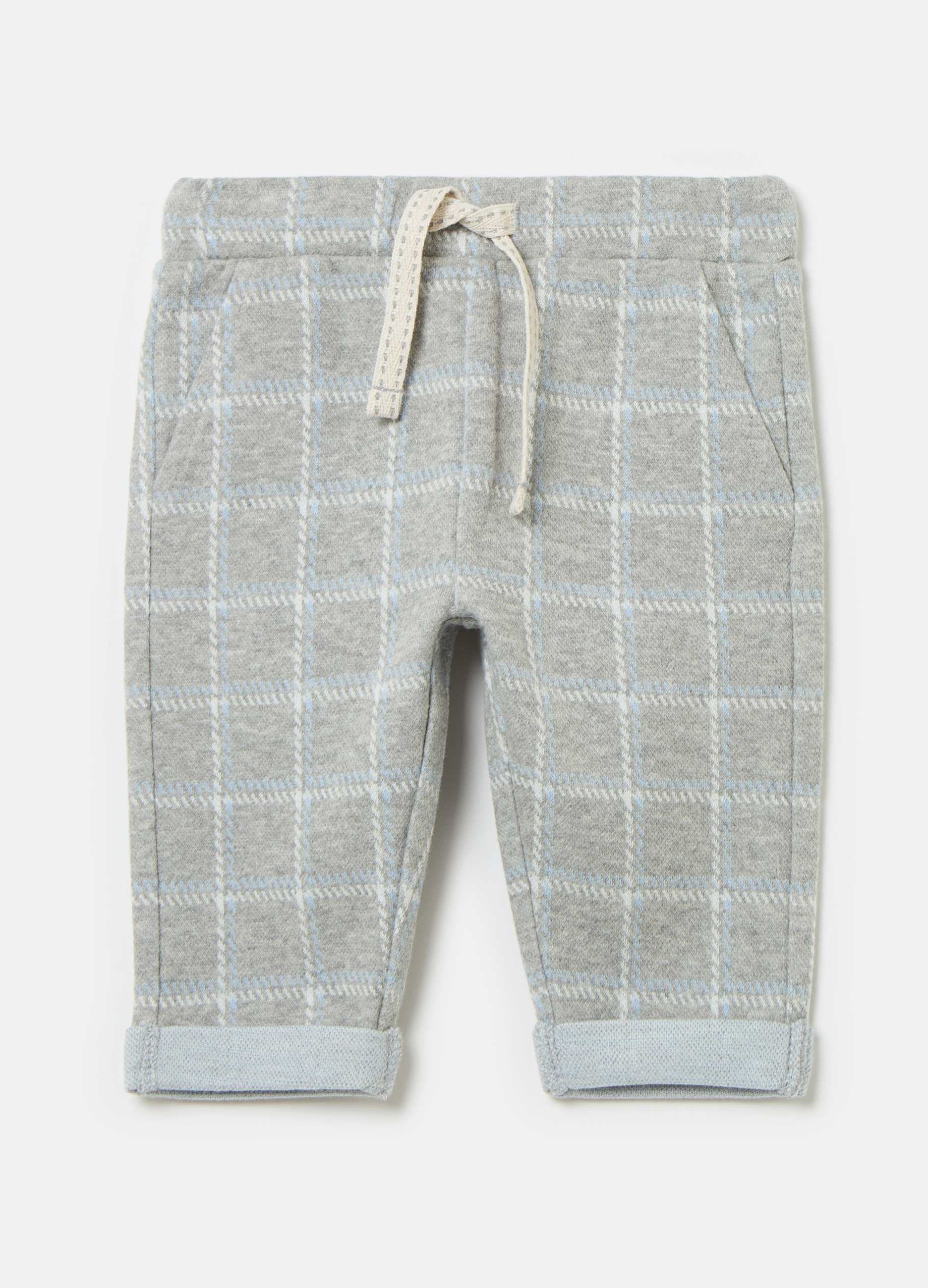 Men's casual pants in grey colour, ideal for autumn and winter. The model features a square pattern and a life drawstring for a comfortable and adjustable fit. Made of high quality durable material, perfect for a casual and fashionable look.