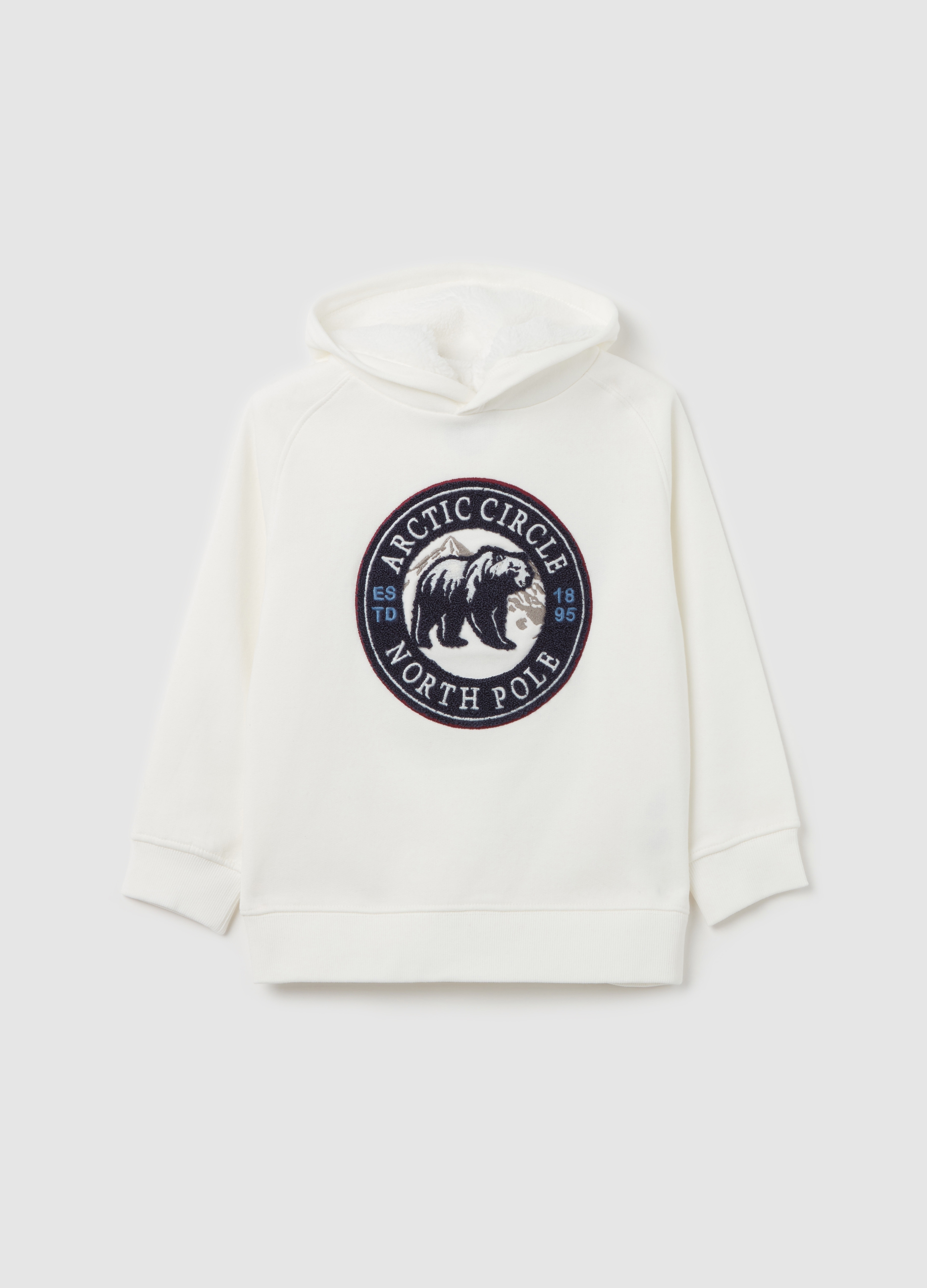 Hoodie and embroidery man boucle effect is perfect for autumn and winter. White, it is ideal for a casual and comfortable look. Made with high quality materials, this sweatshirt is a must-have for every male wardrobe. With its simple and fashionable design, it adapts to any occasion.