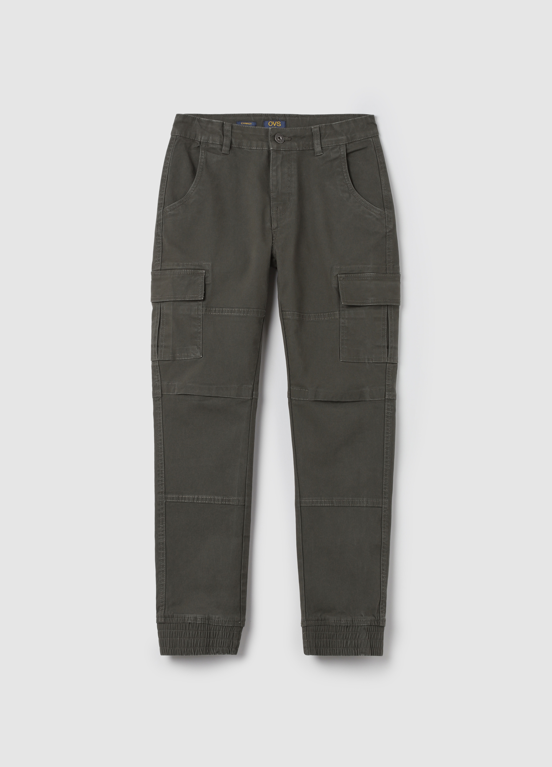 Men's casual pants in green stretch twill, perfect for autumn and winter. Cargo style with practical side pockets. Comfortable and fashionable for a casual but nice look. Available in different sizes to fit perfectly to your size.