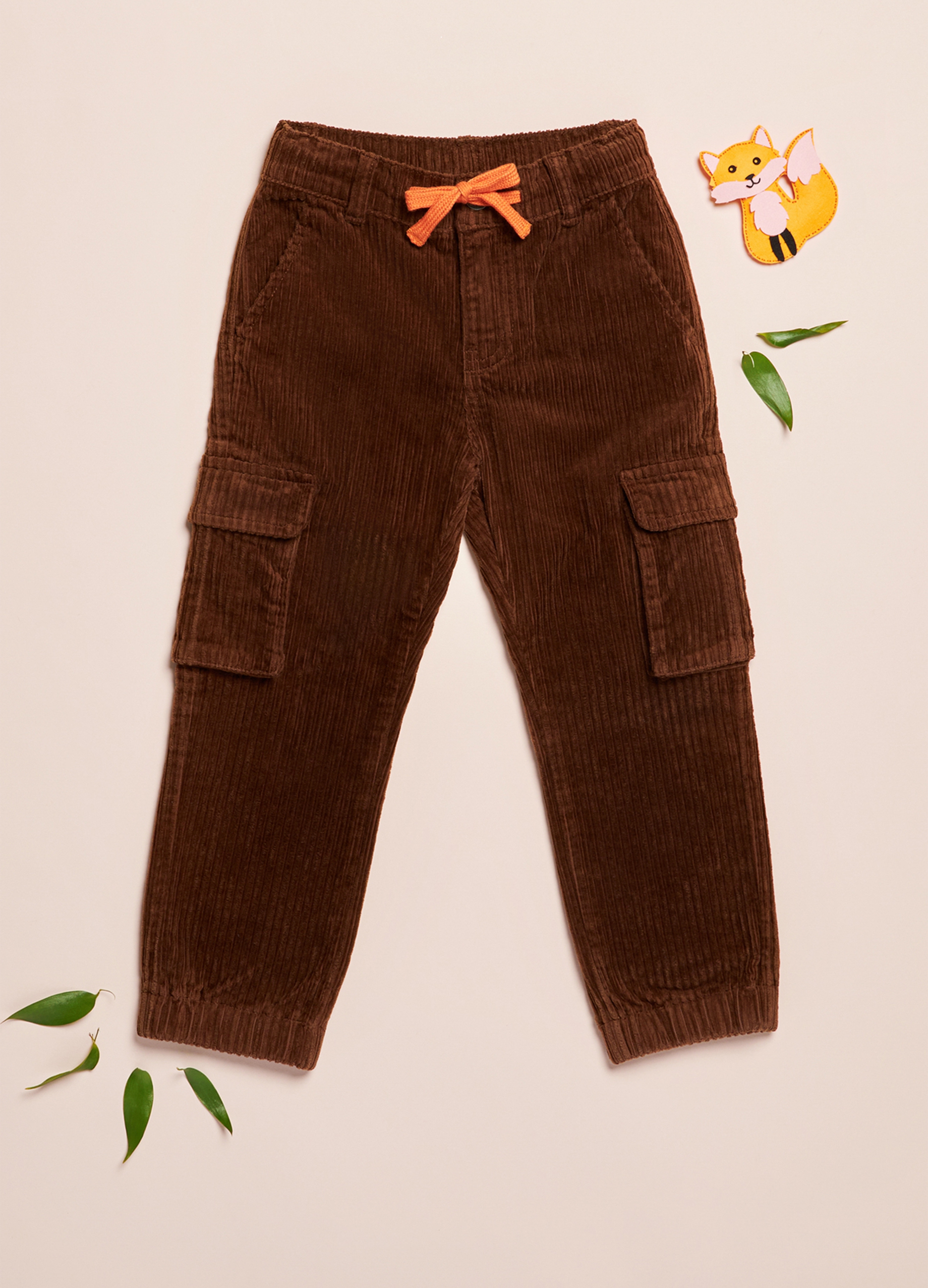 Brown velvet casual trousers perfect for autumn and winter. With cargo pockets and zipper closure. Ideal for a comfortable and fashionable look. Sure to make you feel comfortable on every occasion.
