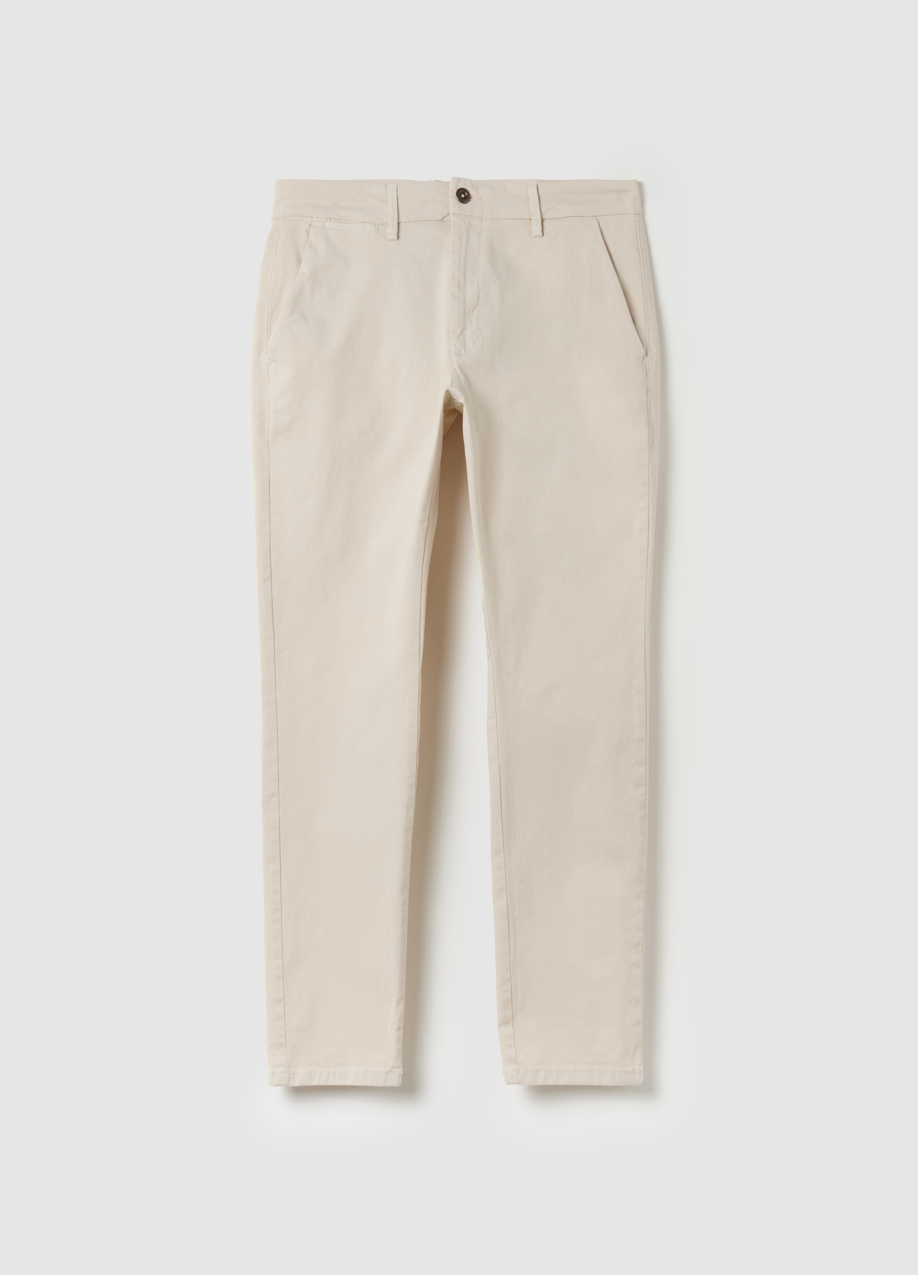 Chino slim fit trousers in stretch cotton ideal for autumn/winter. The white color makes it easy to match any kind of casual outfit. Made with elastic fabric for optimal comfort. A versatile and trendy garment for a fashionable look on every occasion.
