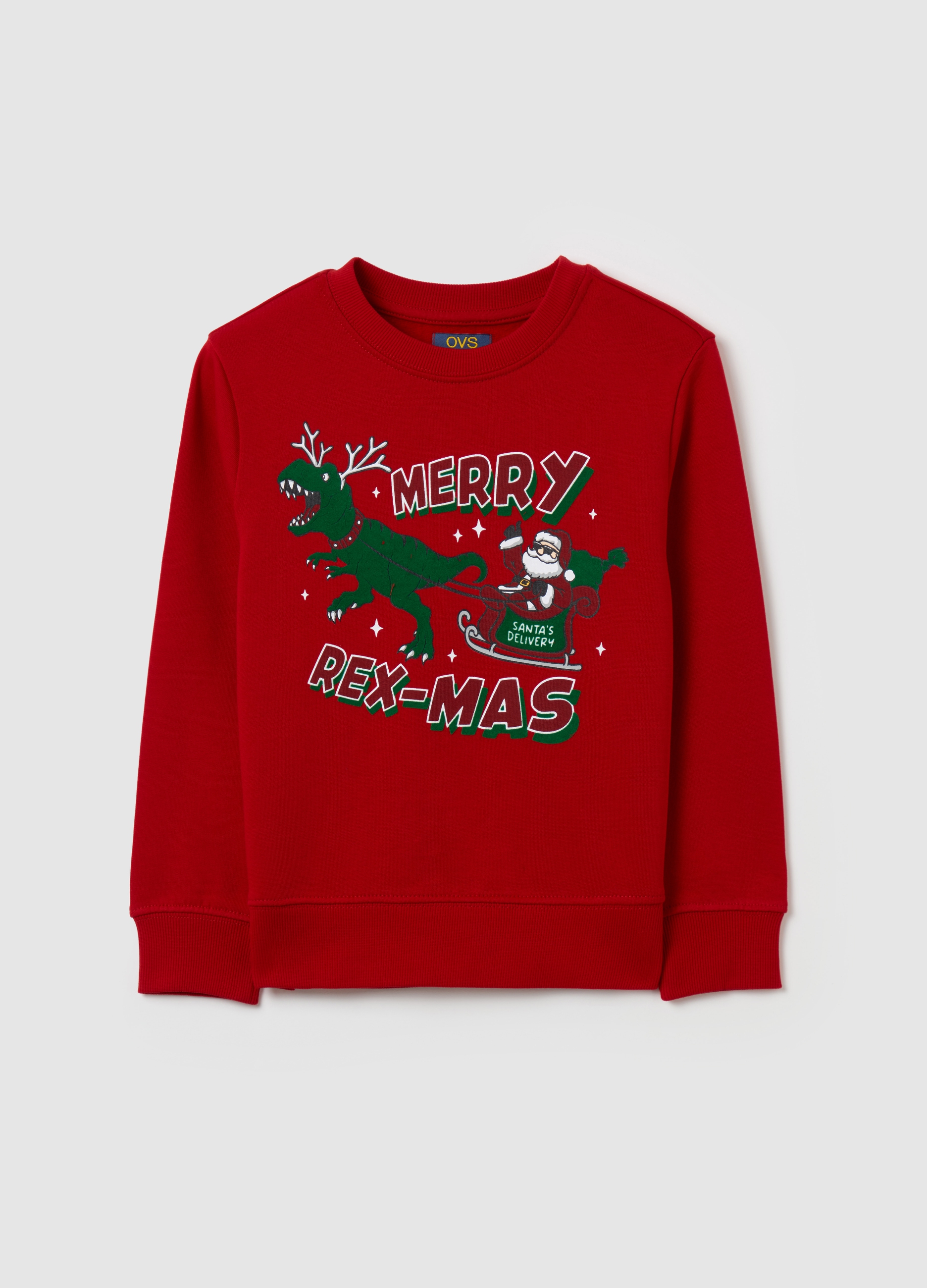 OVS Cotton Sweatshirt With Printing "merry Rex mas" Men