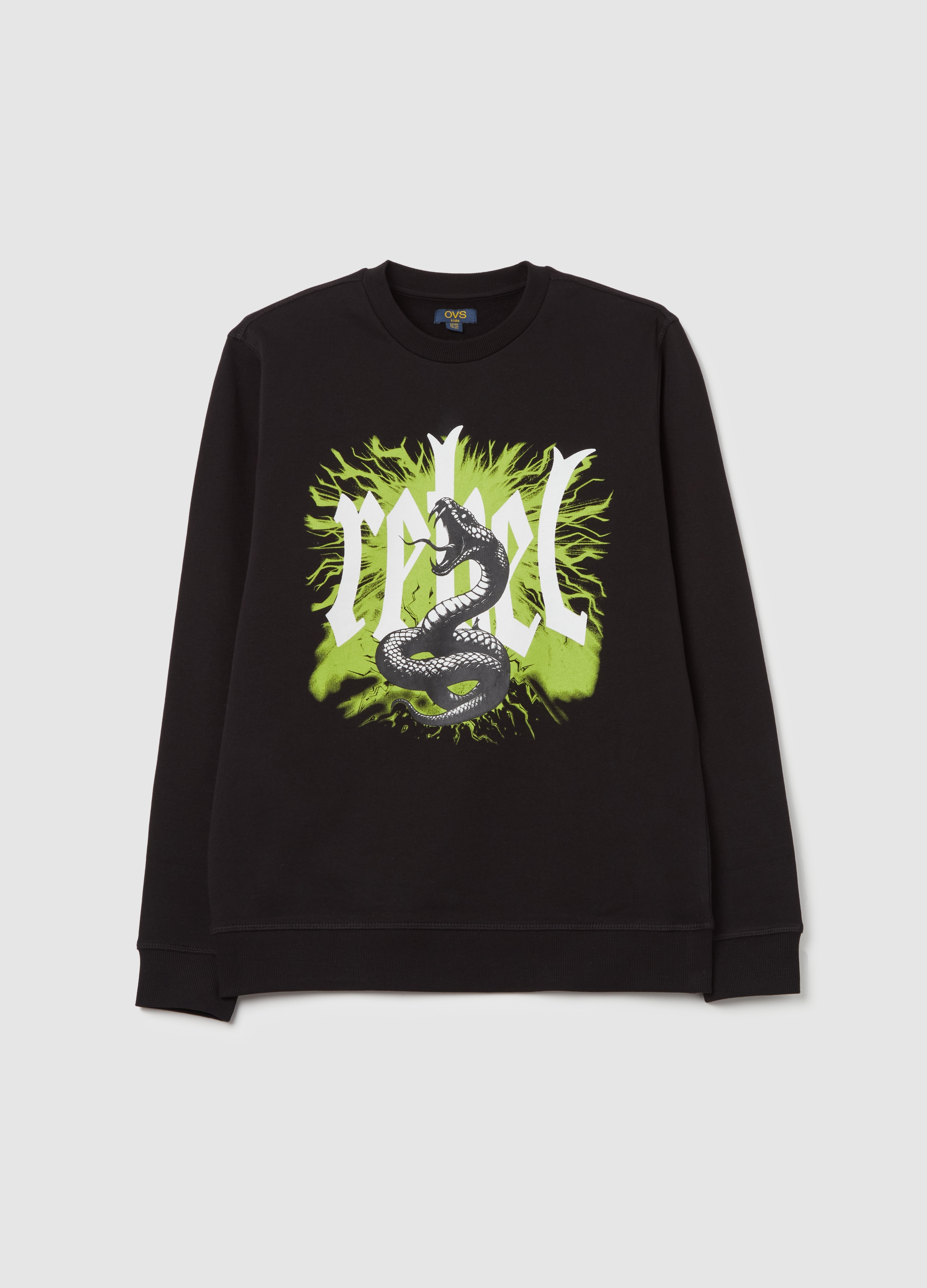 OVS Cotton Sweatshirt with Rebel Print and Man Snake