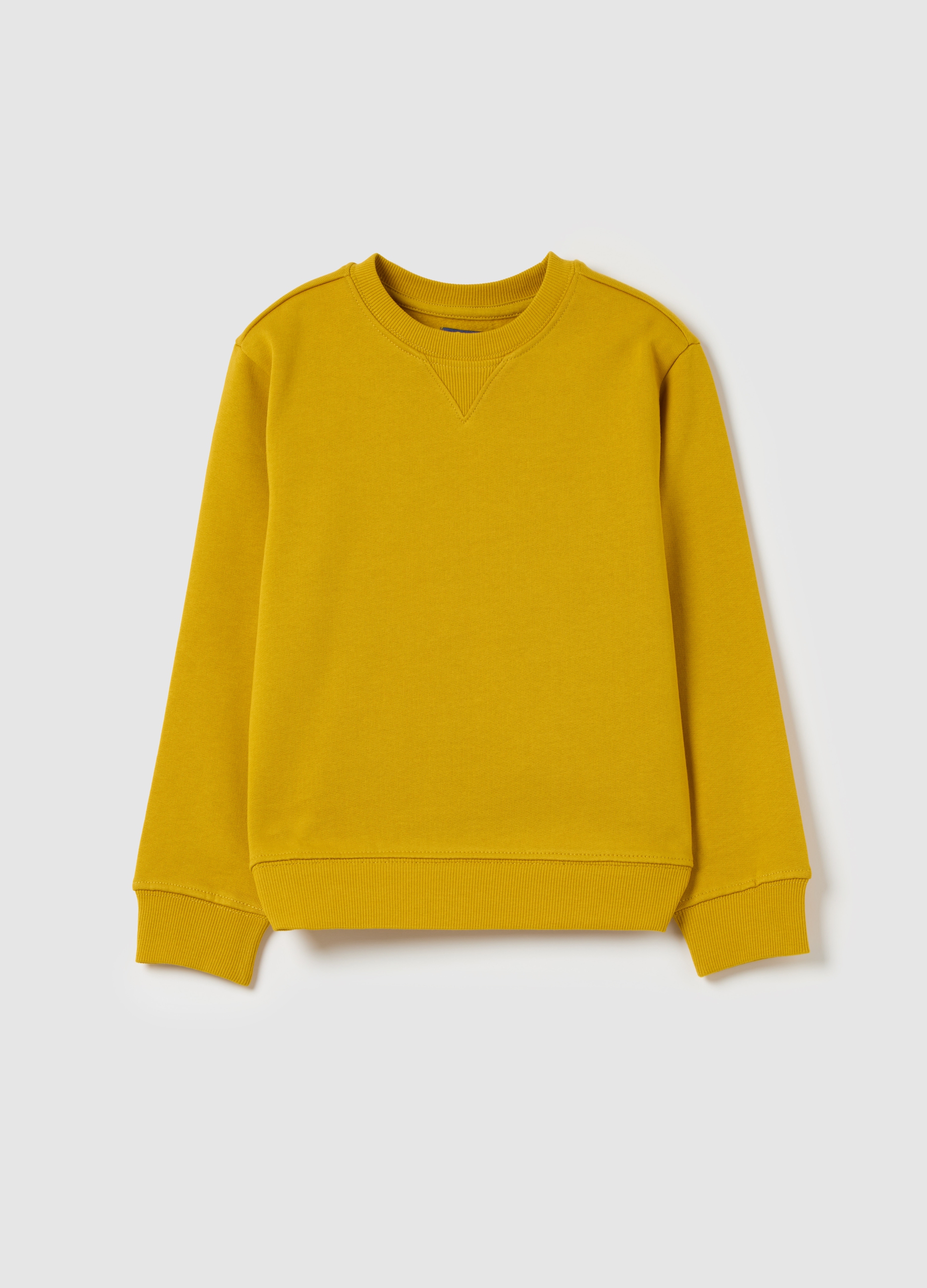 Crew neck sweatshirt with detail to V for man, perfect for autumn and winter. Made of soft yellow fabric, ideal for a casual and comfortable look. The classic cut and V detail on the neck make it a versatile and fashionable garment. Comfortable and warm, it is ideal to complete your outfit on colder days.