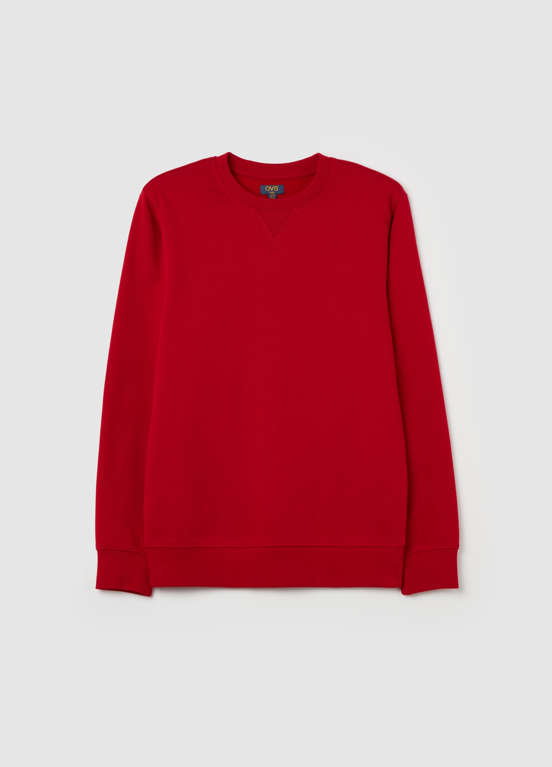 Men's crew neck sweatshirt, ideal for autumn and winter, red. V detail on the chest for an extra touch of style. Comfortable and casual, perfect for informal outfits. A versatile garment to face colder days with style.
