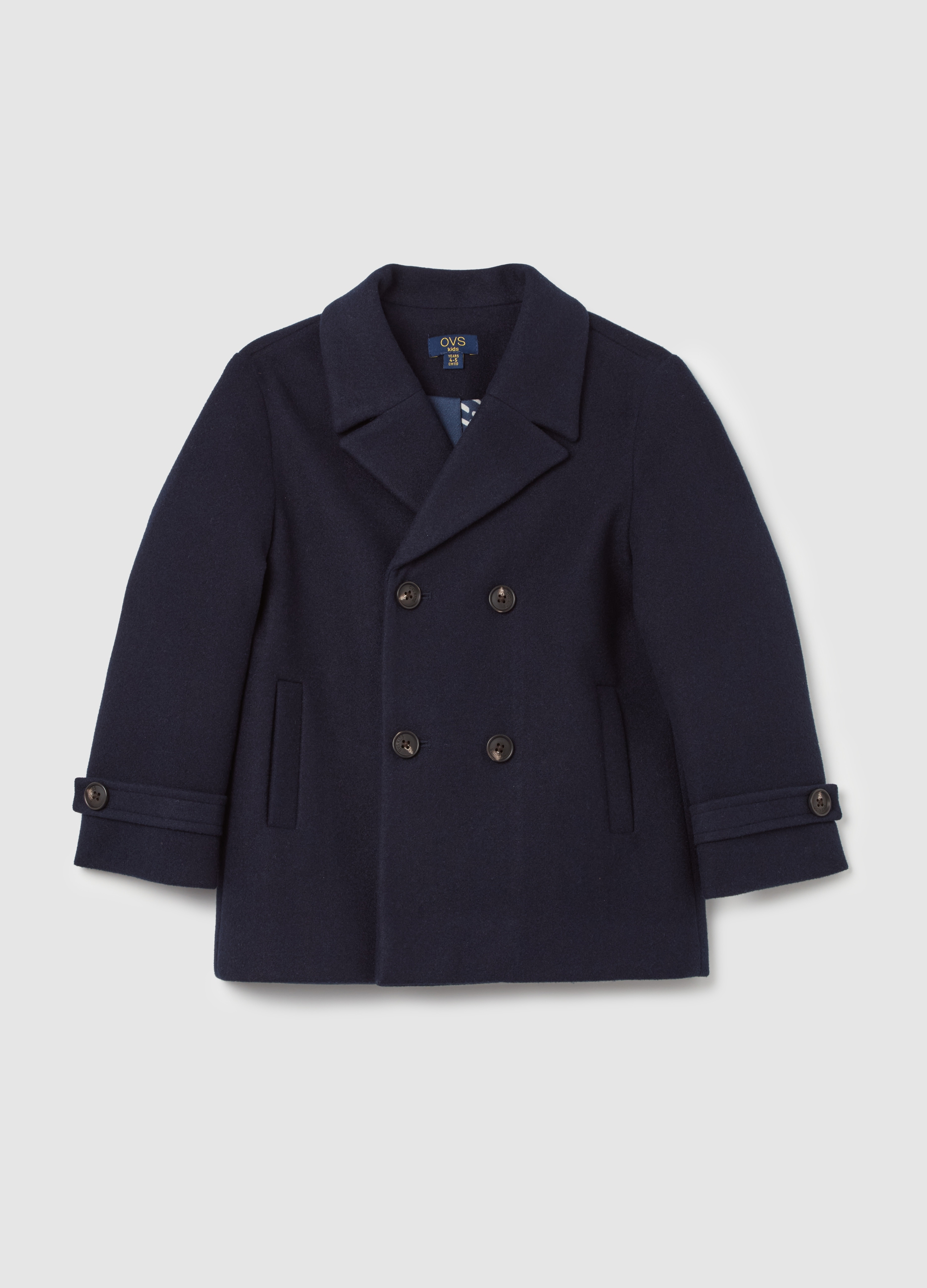 Men's double-breasted coat perfect for winter, made of soft blue fabric. Ideal for a casual and elegant look. The garment stands out for its versatility and refined style. Suitable to complete every winter outfit with class and sobriety.