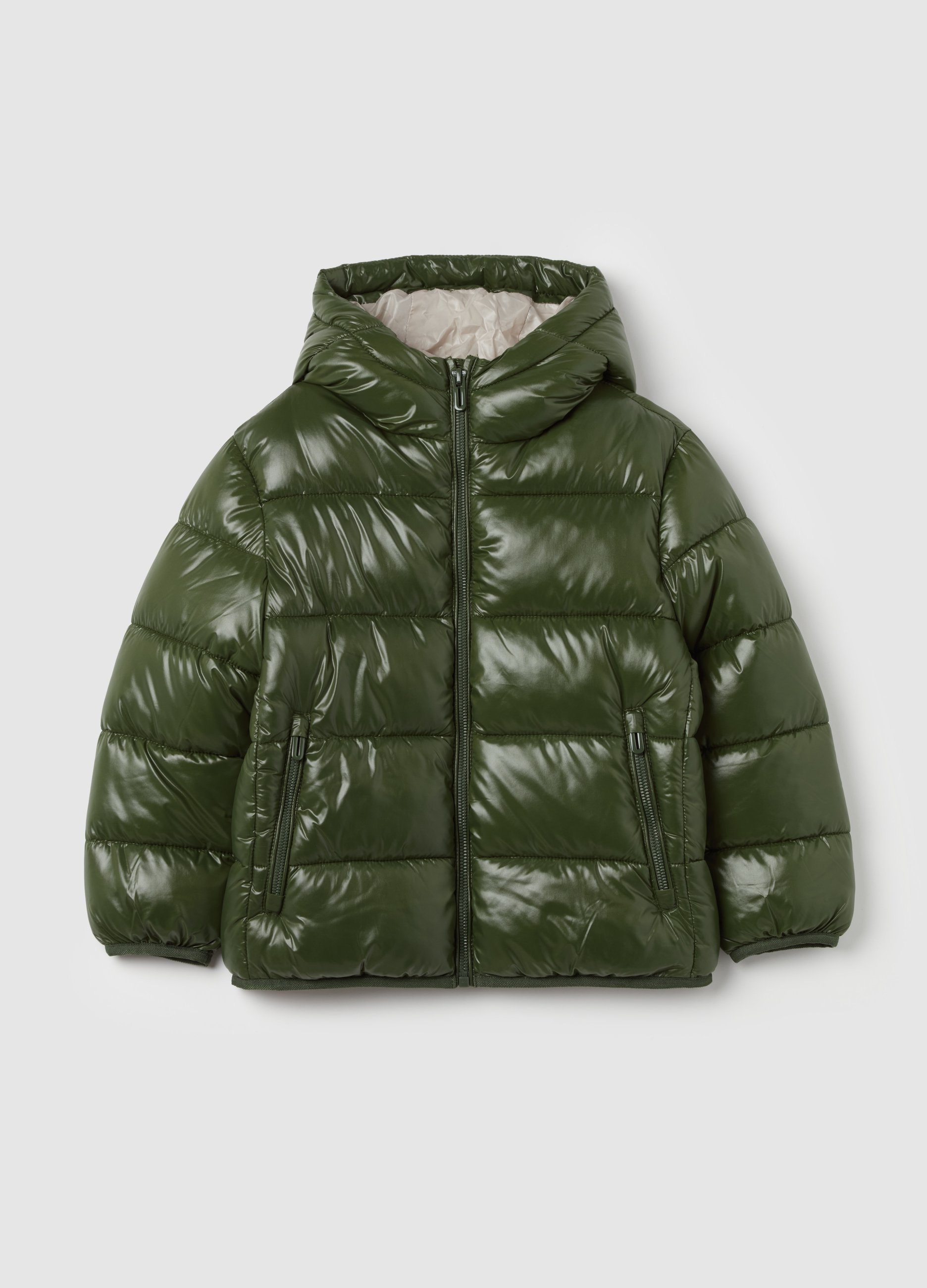 Padded jacket with hood and writing for man 67, perfect for winter. The green color gives a touch of elegance to the casual look. Made with high quality materials, it guarantees comfort and warmth even on colder days. Ideal to complete your outfit in a practical and sophisticated way.