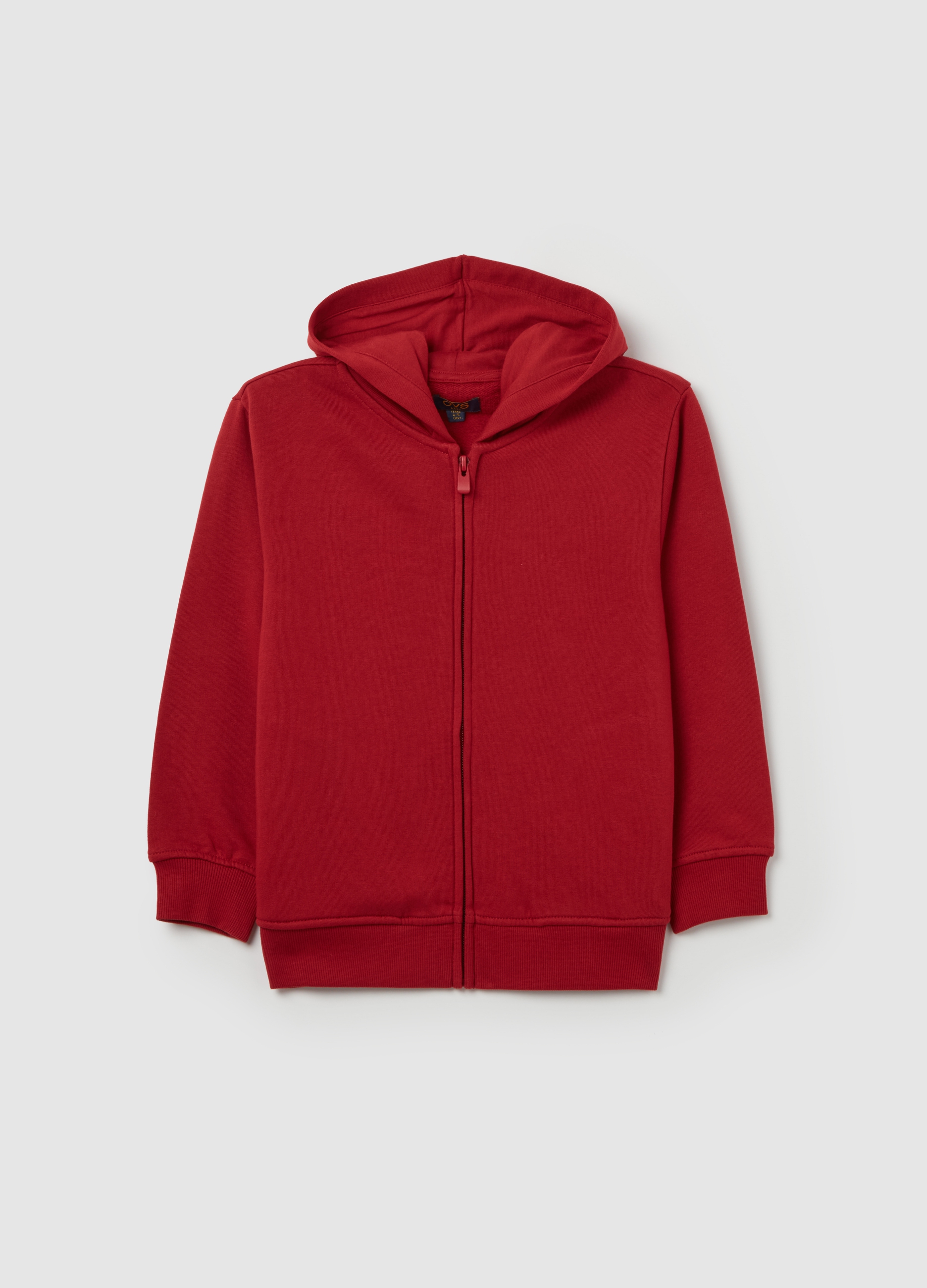 Men's casual Sweatshirt in organic cotton, perfect for Autumn/Winter season. The bright red color makes it a versatile and trendy garment. With full zipper and hood, it will be the ideal companion for informal and comfortable look. Give a touch of style to your wardrobe with this OVS sweatshirt.
