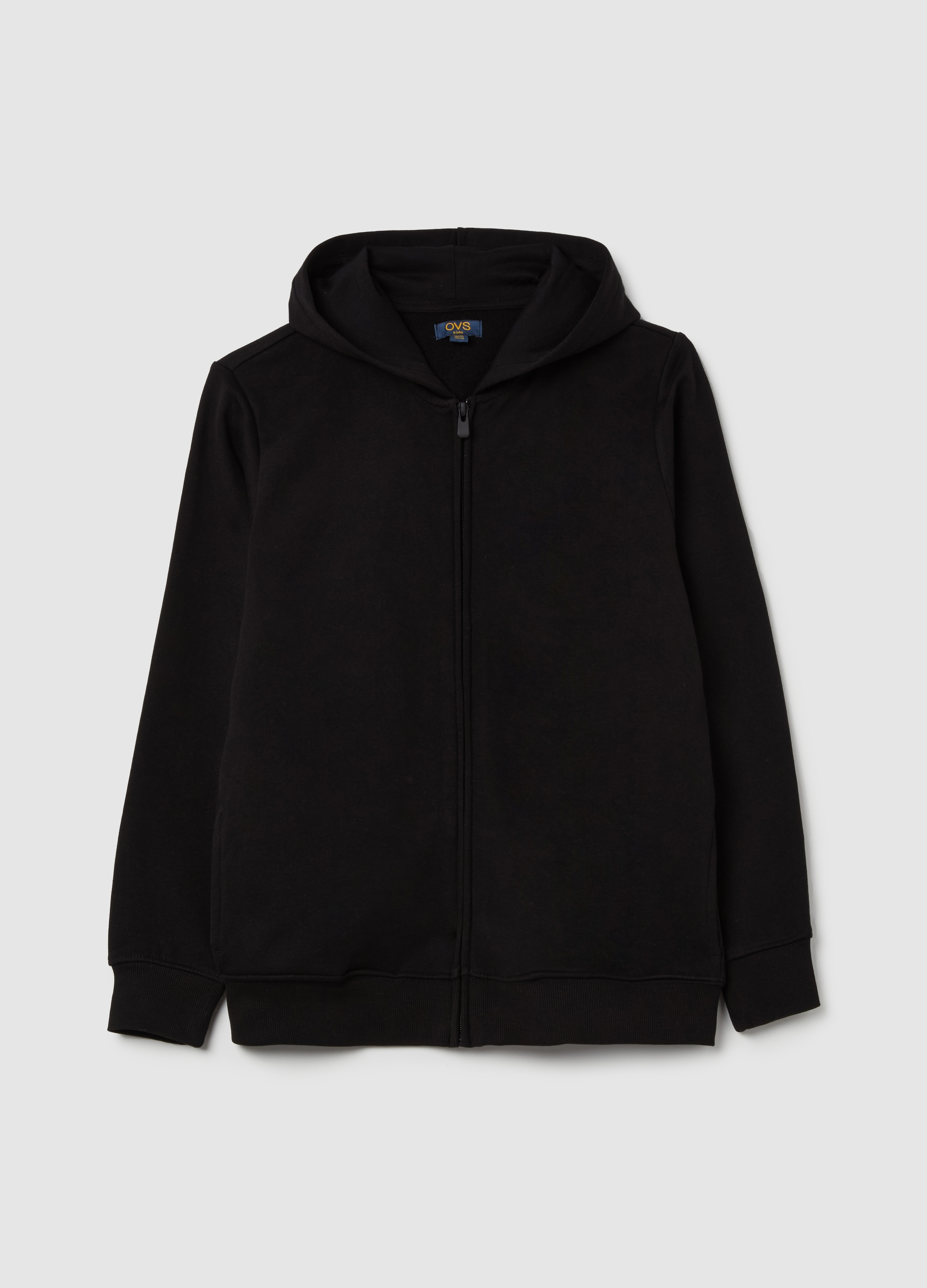 OVS men's casual Sweatshirt without brand, ideal for autumn and winter. Black color and made of organic cotton with full zipper and hood. A comfortable and fashionable garment to face the coolest days with style.