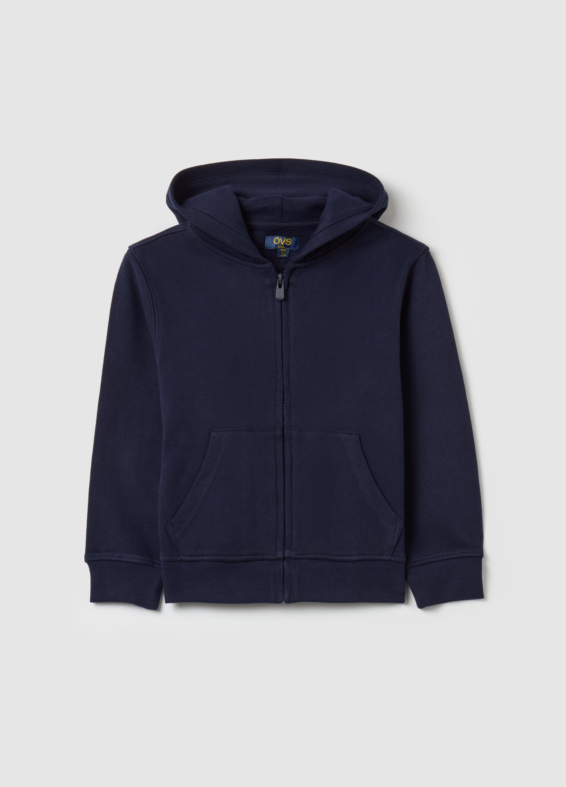 Men's casual Sweatshirt in organic cotton with hood and full zip closure. The blue color makes it ideal for autumn and winter. The Essential model offers comfort and style for a casual and fashionable look. Perfect to wear in moments of relaxation or during the coolest days.