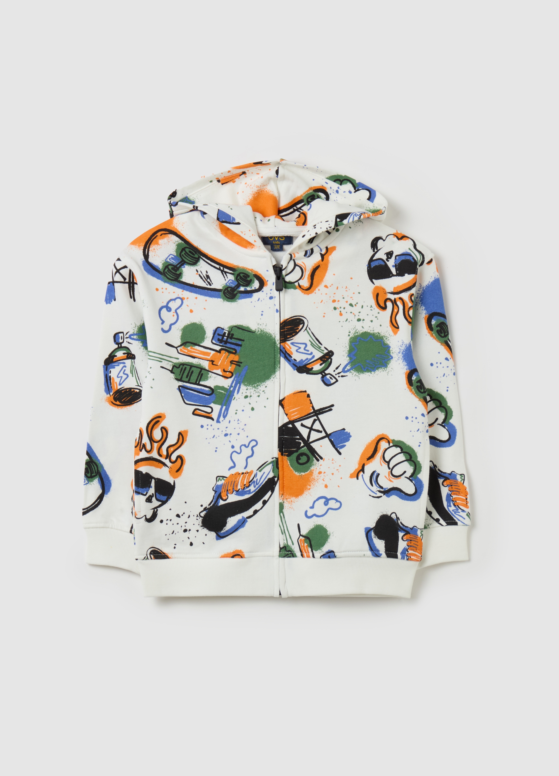 Sweatshirt men casual for autumn/winter, white color. Trendy design with print, French Terry fabric and zip closure. Perfect for a fashionable and comfortable look in the coldest days. A versatile and quality garment to match jeans or casual pants.