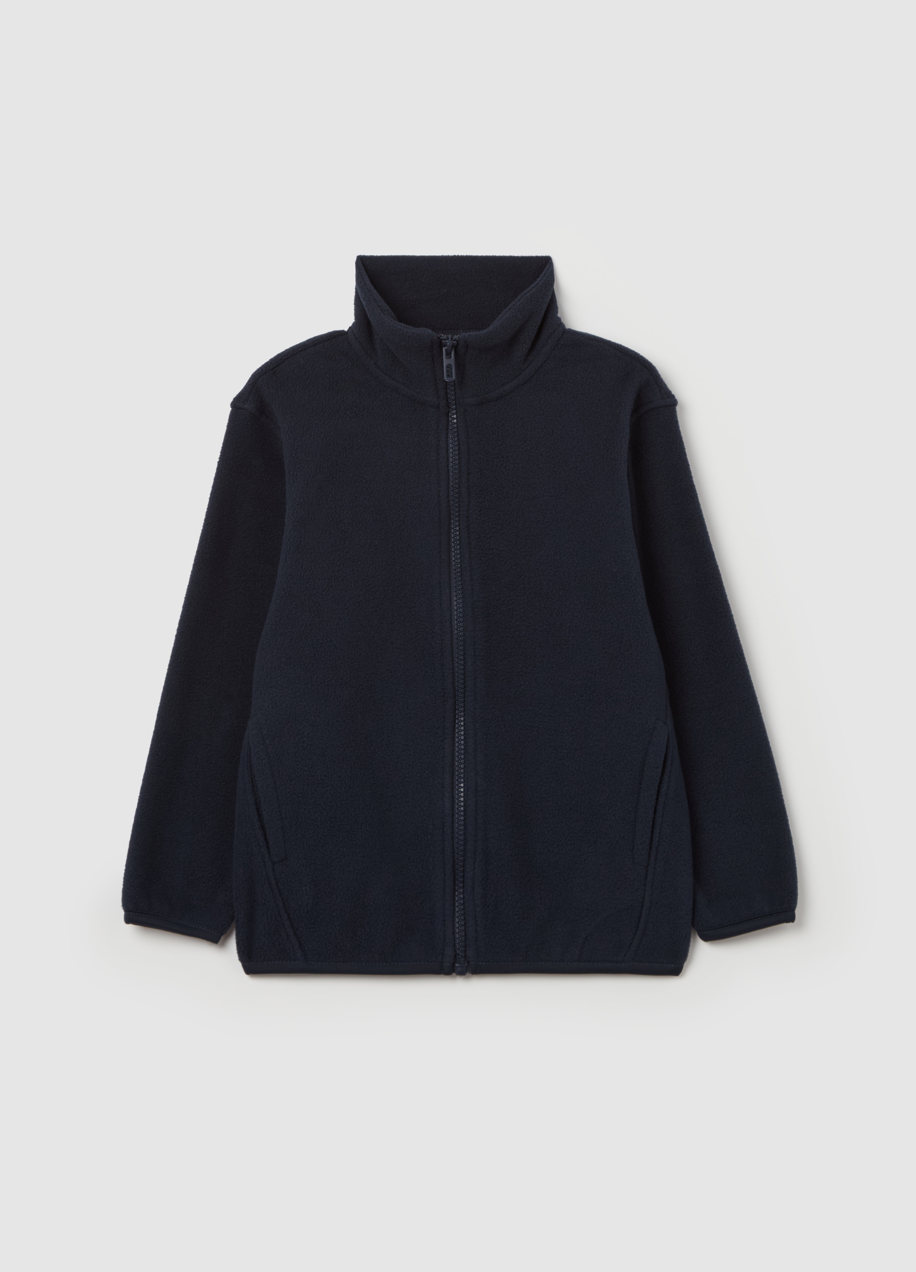 Sweatshirt in blue fleece with full zip closure and high neck, ideal for autumn and winter. The casual and comfortable design makes it perfect for everyday clothing. Made of soft and warm material, it guarantees a fashionable look and protected from cold. Fits casual and sporty style, perfect to match jeans or trousers.