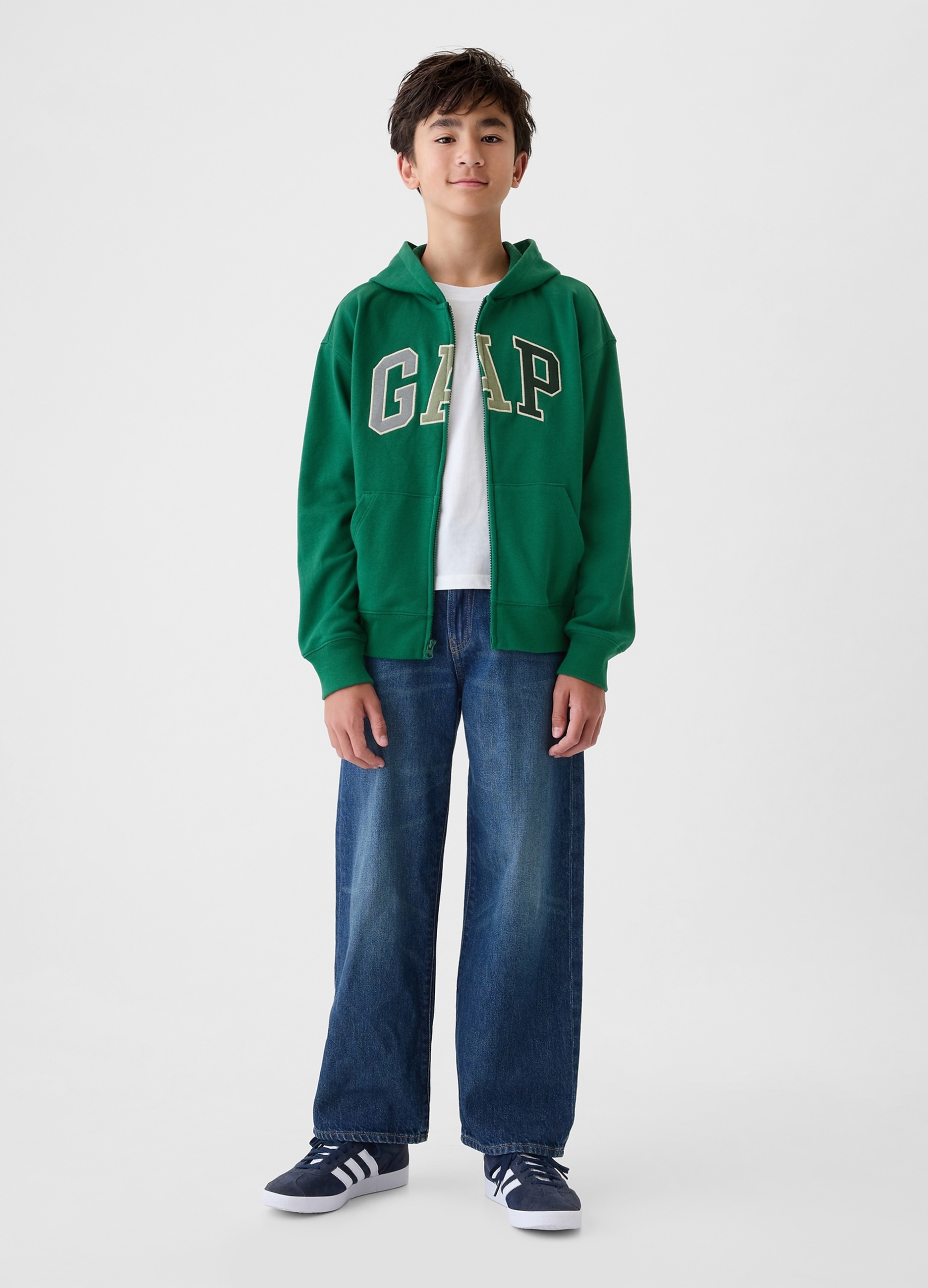 Men's casual Sweatshirt with hood and full zip. Perfect for autumn and winter, green. Size XL 152/158 with logo embroidery on the chest. Ideal for a sporty and comfortable style.
