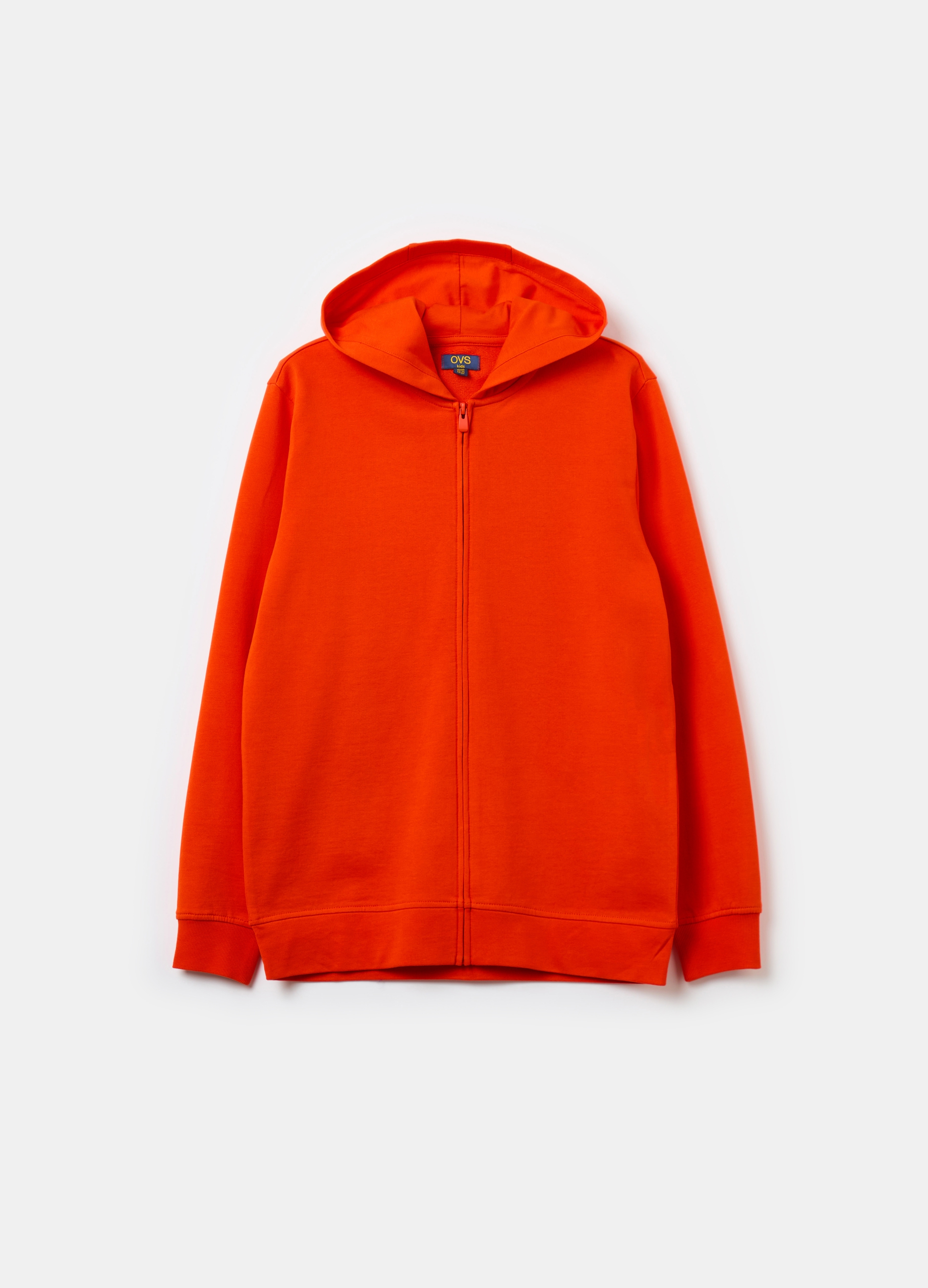Men's Casual Sweatshirt with full zip and hood, ideal for autumn and winter. The bright orange color adds a touch of style to each outfit. Made of warm and comfortable fabric, perfect for facing the coolest days with comfort. To wear on every informal occasion.