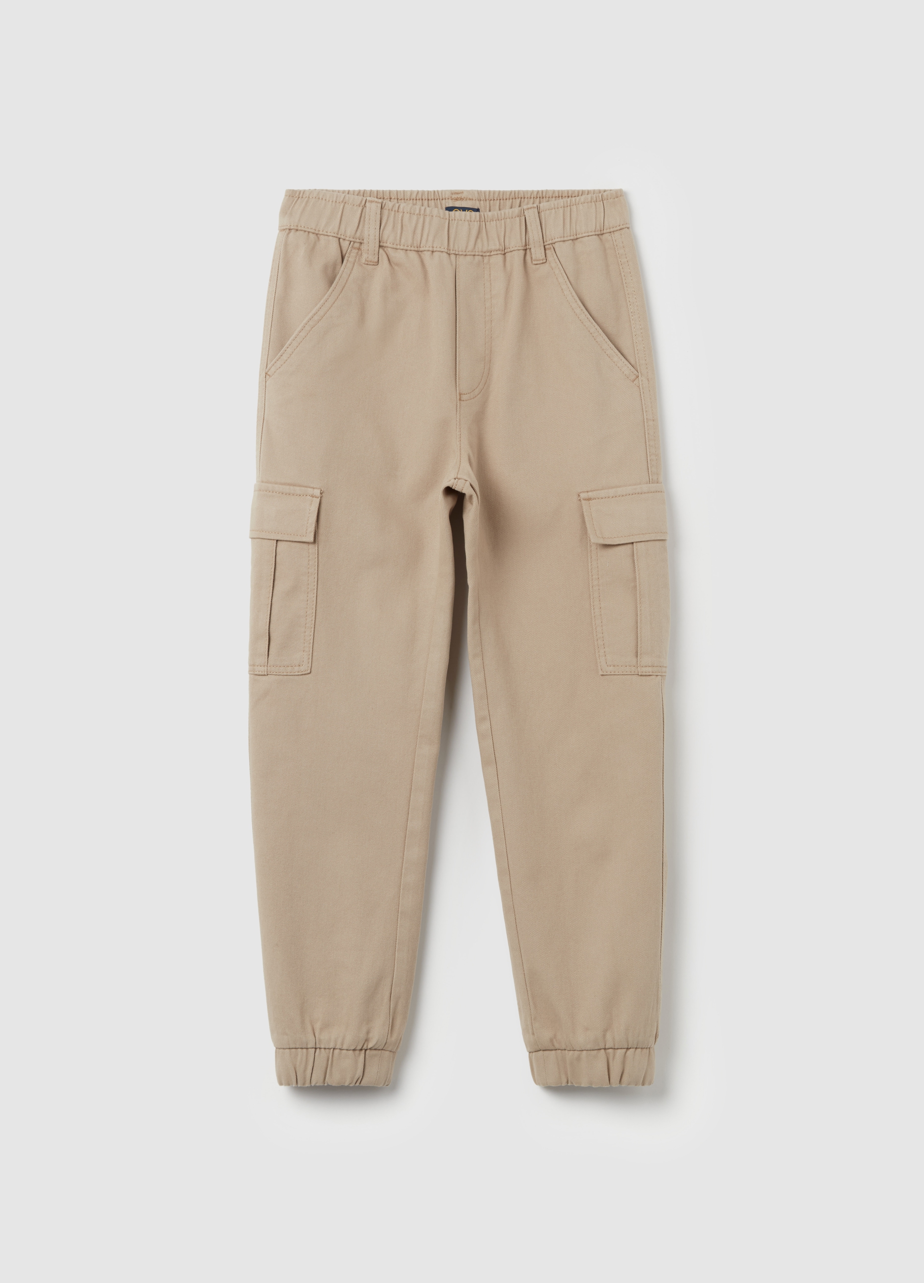 Men's casual pants in beige cotton, ideal for autumn and winter. Model with joggers cut and cargo pockets, perfect for a comfortable and fashionable look. Soft and durable fabric, suitable for every occasion. Available in sizes 13 and 14.