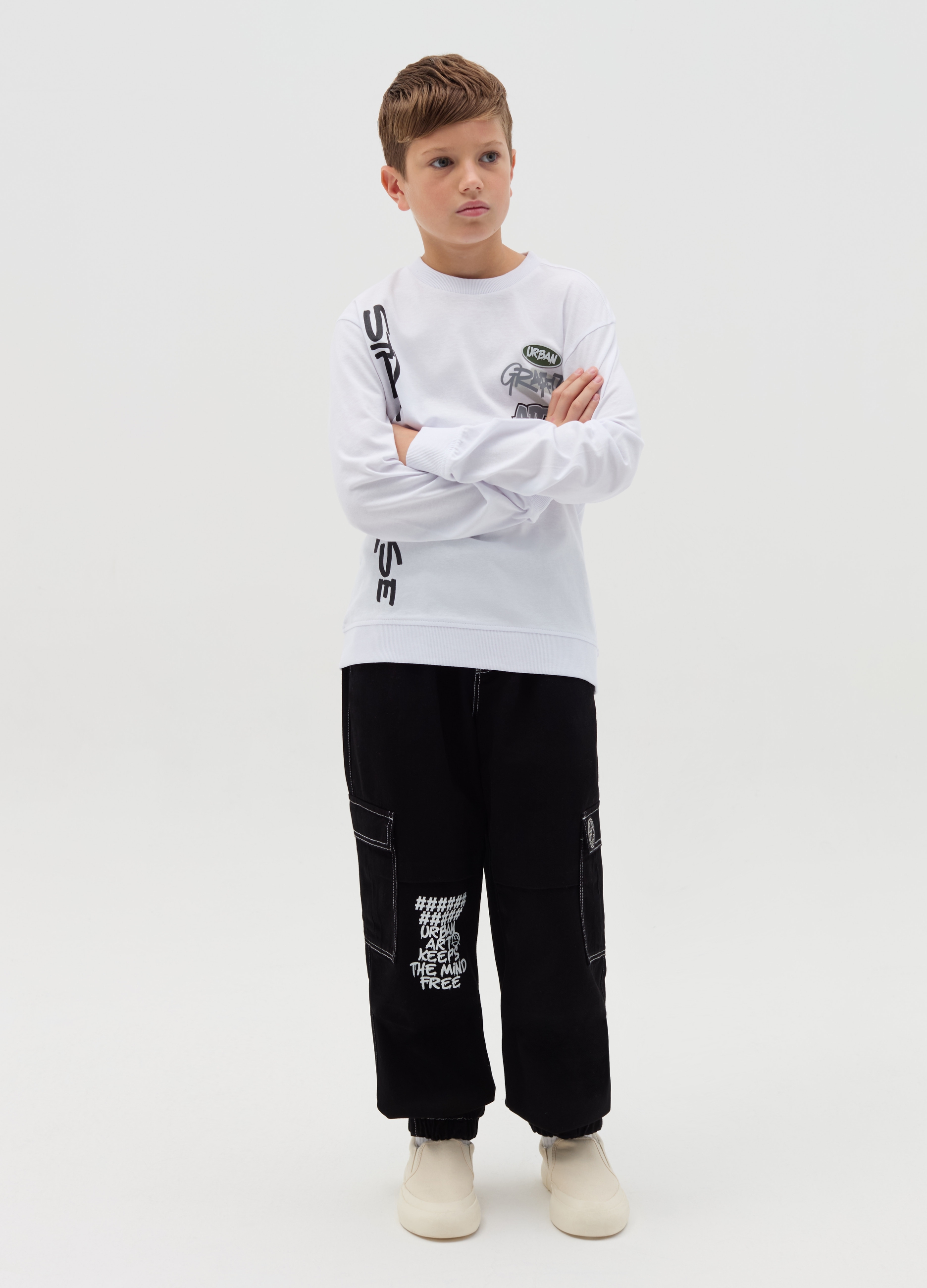 Men's casual pants perfect for autumn and winter. Black, with coulisse and print, are comfortable and fashionable. Ideal for a casual and versatile look. Suitable for any informal occasion.