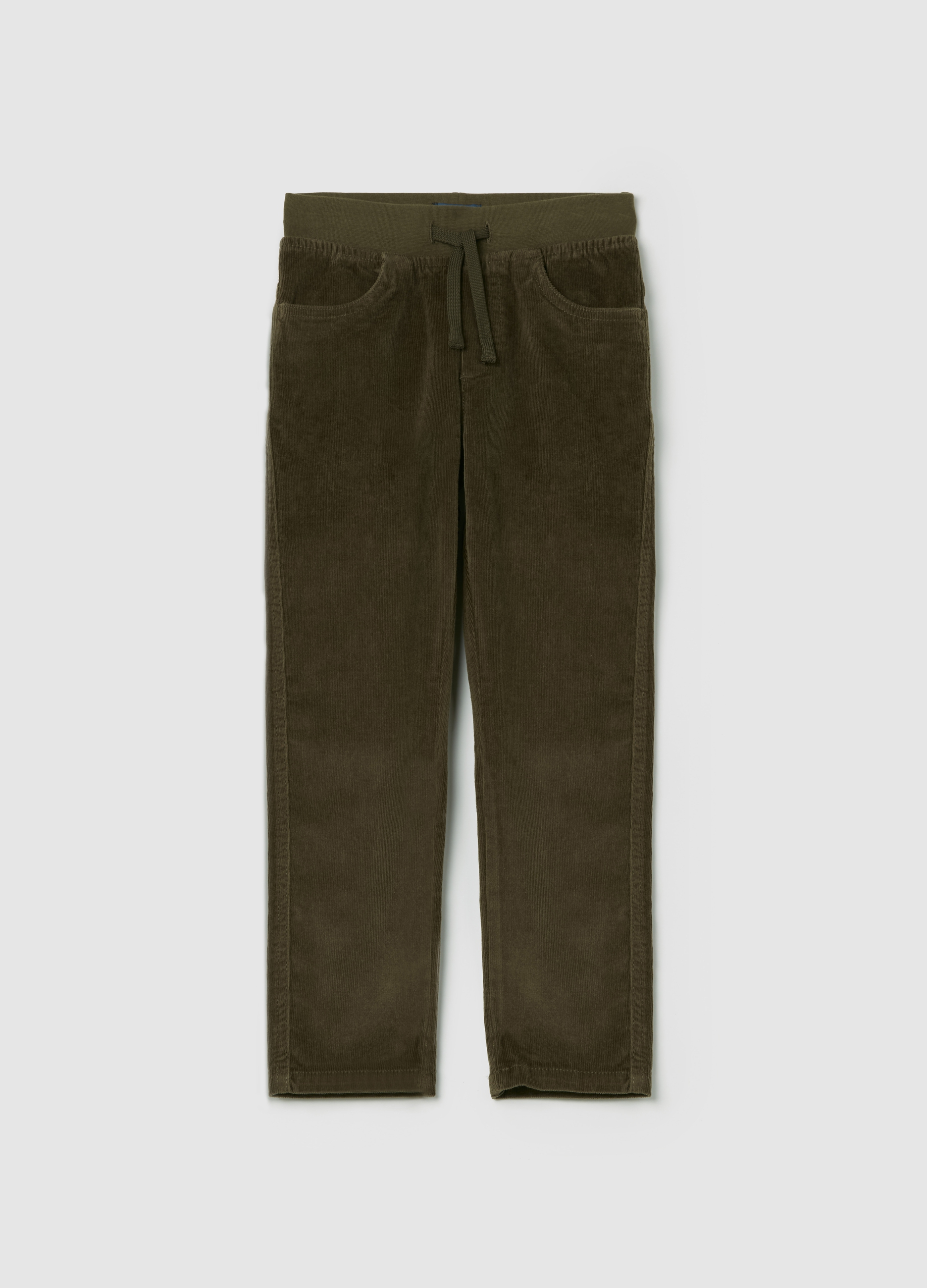 Green ribbed velvet pants, perfect for autumn and winter. With life drawstring and comfortable side pockets. Ideal for a casual and fashionable look. Perfect to match with sweaters and sports shoes.