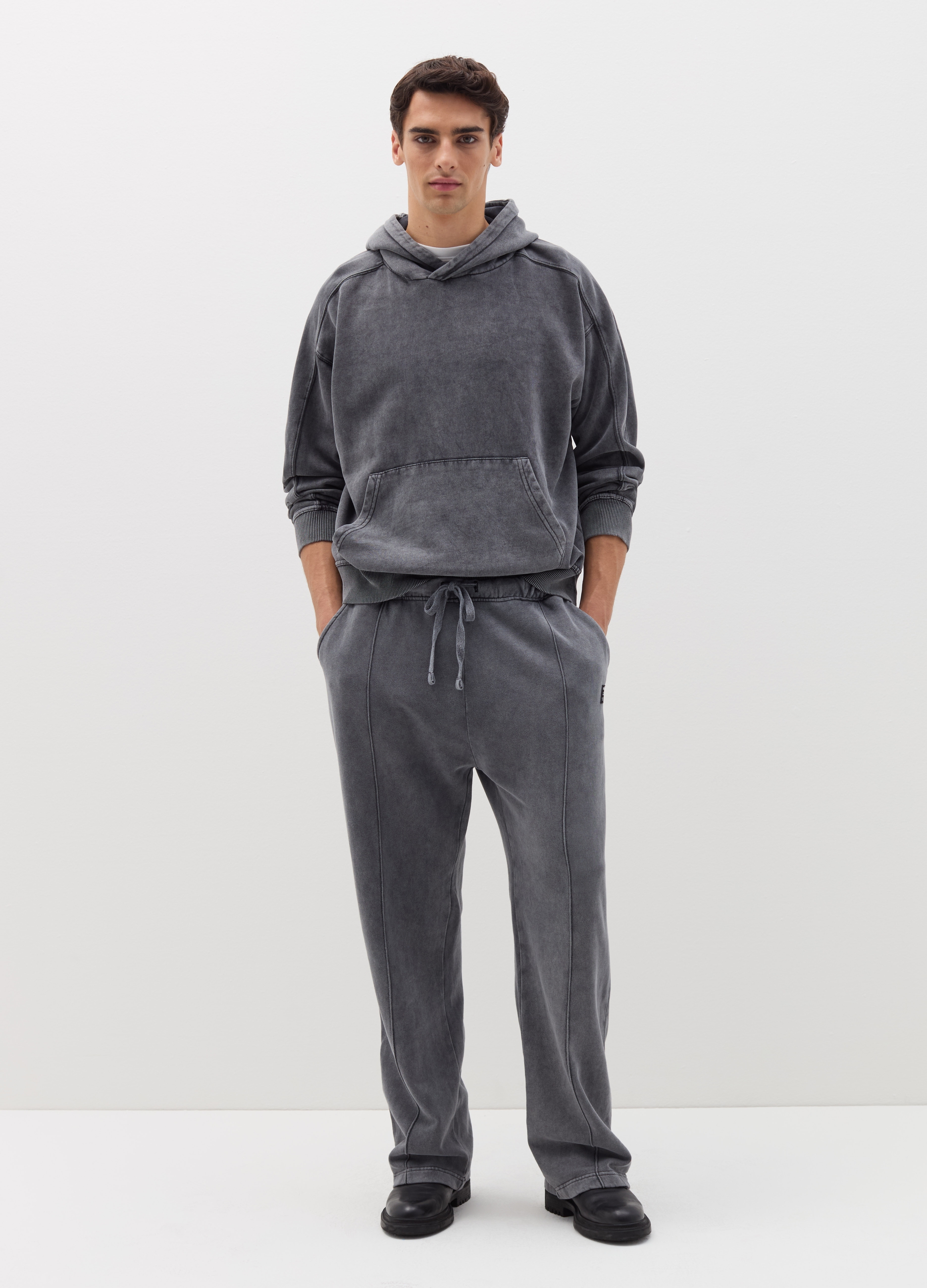 Joggers in black sweatshirt with embossed seams, ideal for autumn and winter. Made of comfortable and durable fabric, perfect for a casual and fashionable look. With side pockets and elastic waist for a perfect fit. Choose comfort and style without sacrificing quality.