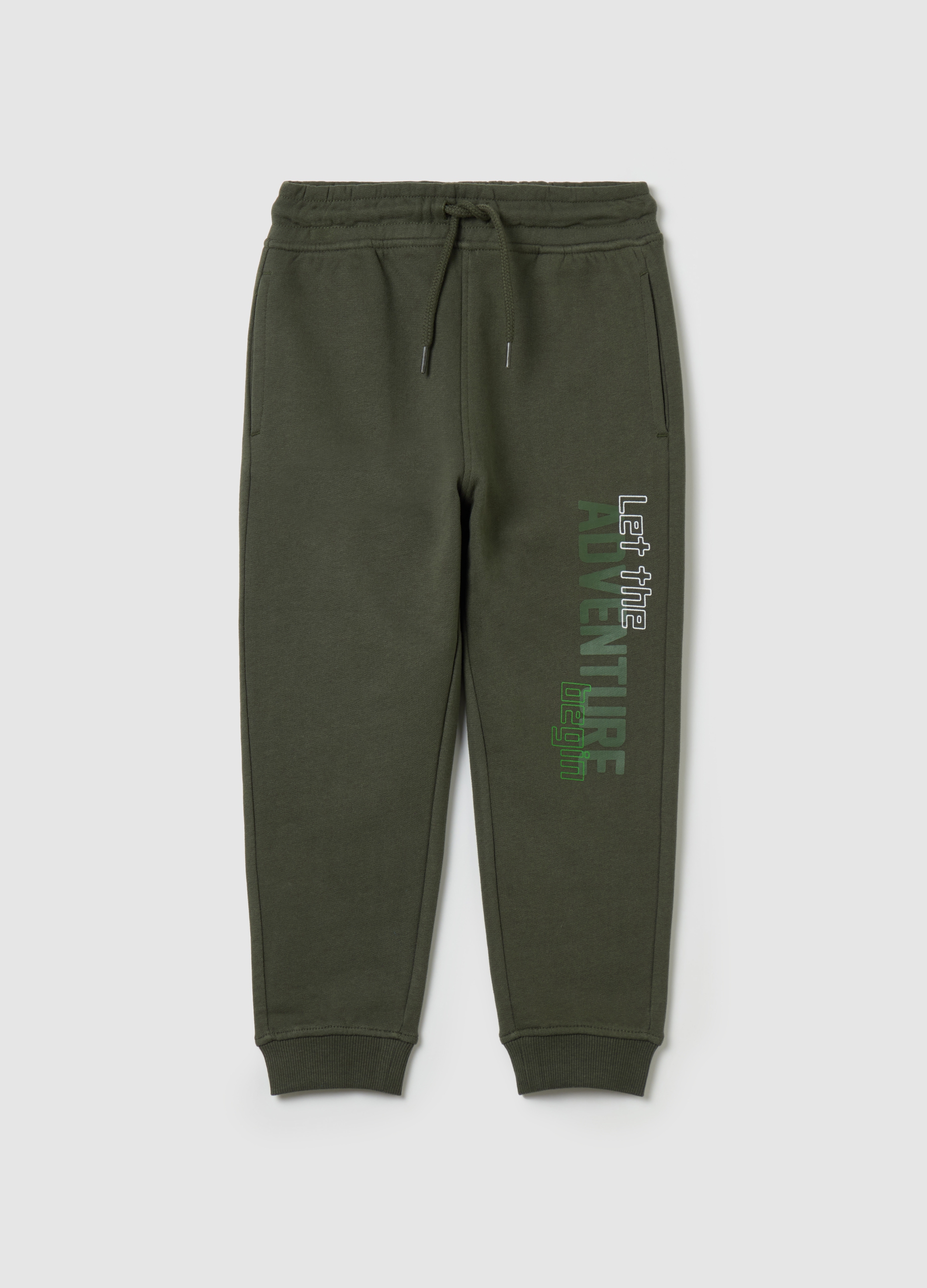 Green casual pants for men ideal for autumn and winter. Made of soft hoodie and lettering print, they are comfortable and fashionable. Perfect to match with a t-shirt and sneakers for an informal and trendy look. Suitable for relaxing days or for light sports.
