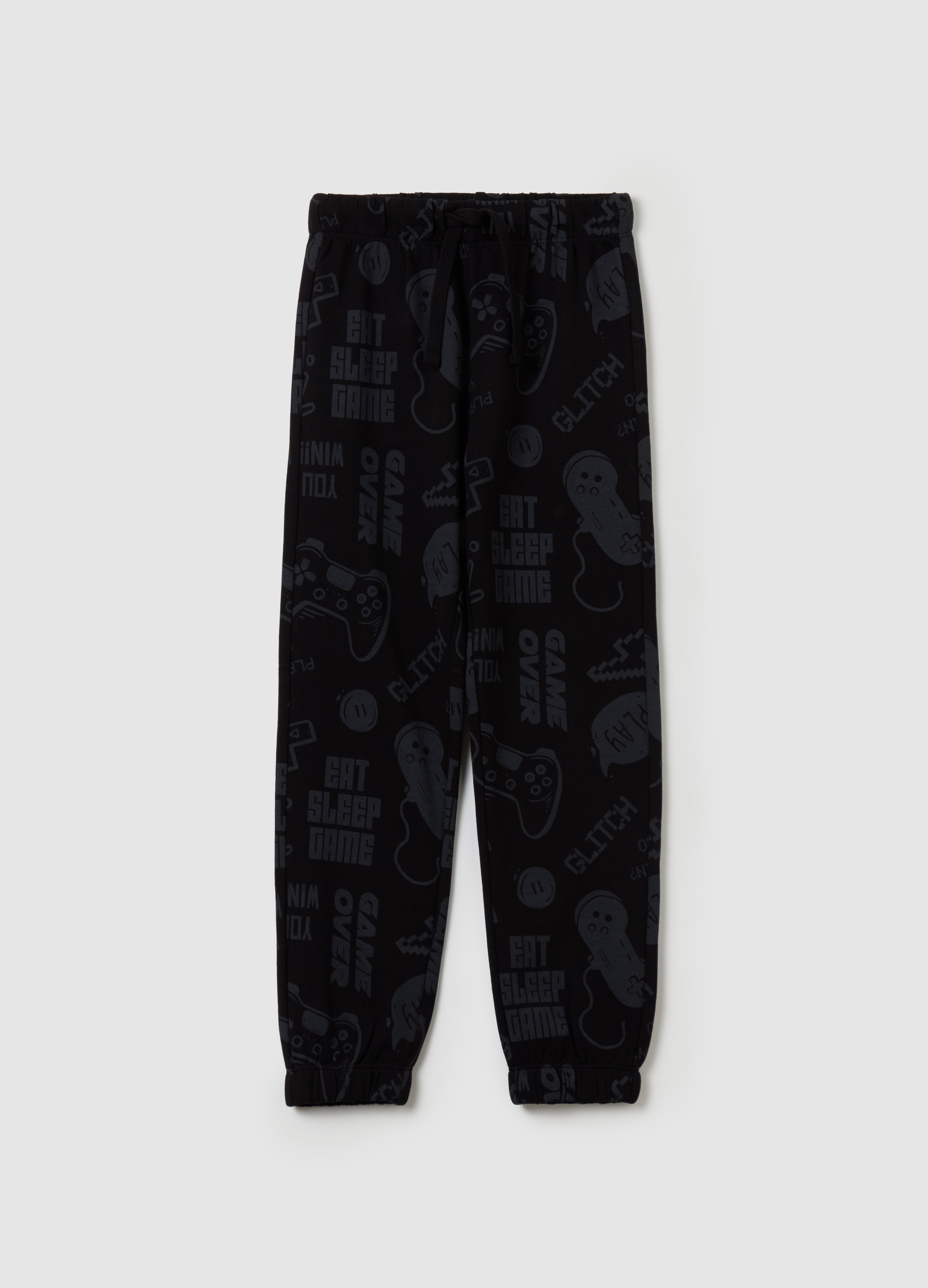 Men's casual Pants, ideal for autumn and winter. Made of soft black sweatshirt, with coulisse and print on the side. Comfortable and fashionable, perfect for a casual and trendy look. Available on OVS.